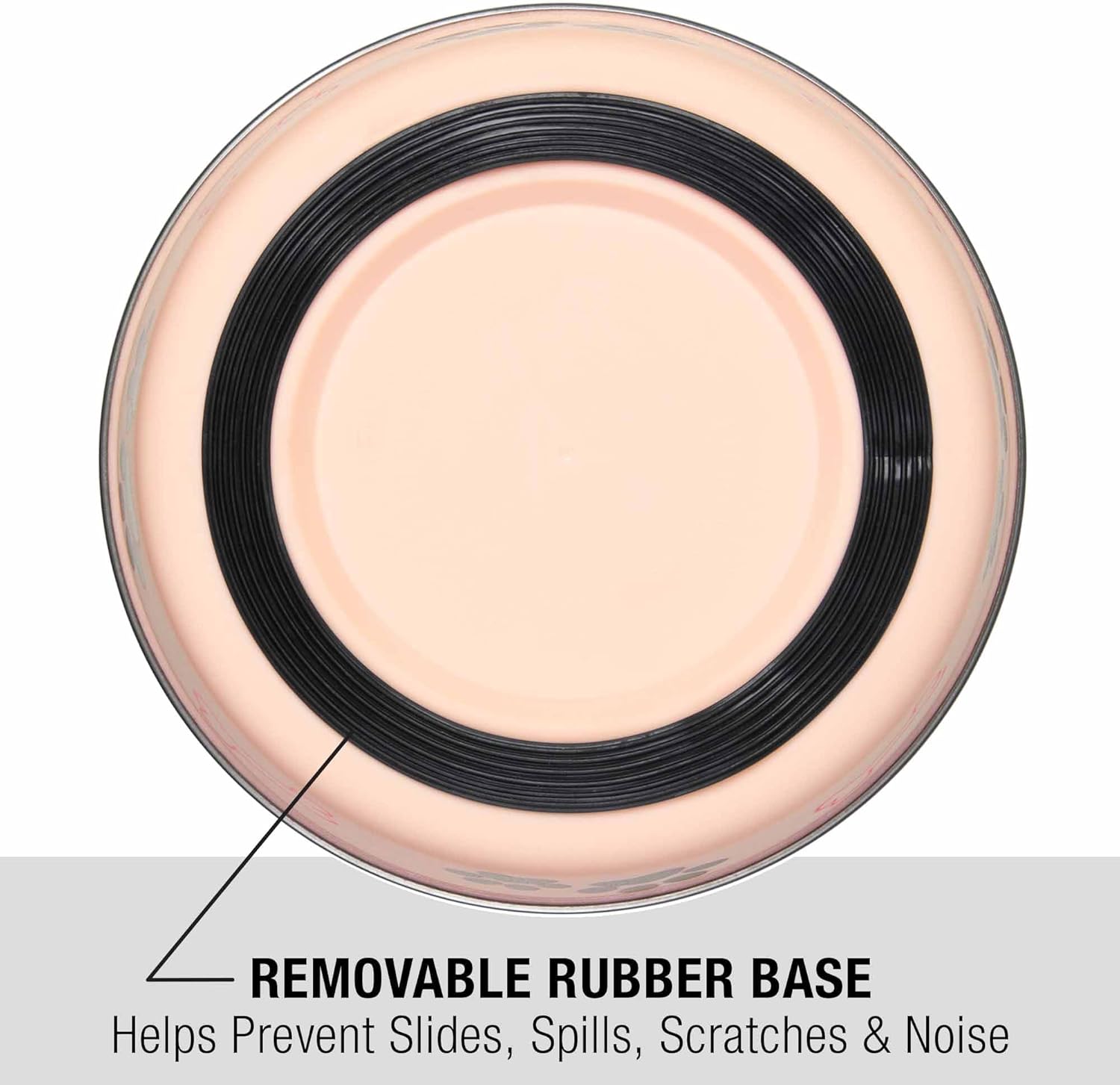 - Removable soy-based rubber ring prevents spills and reduces noise