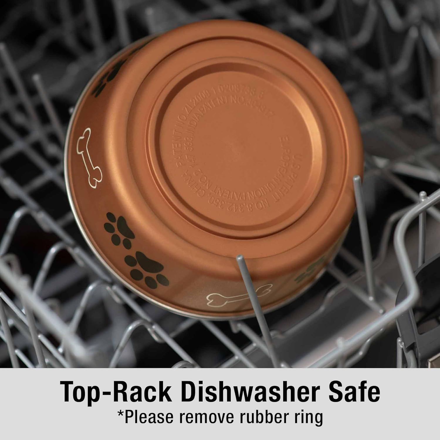 - Features a removable rubber base, helping prevent your dog from nosing their bowl all over the floor and causing noise or spills