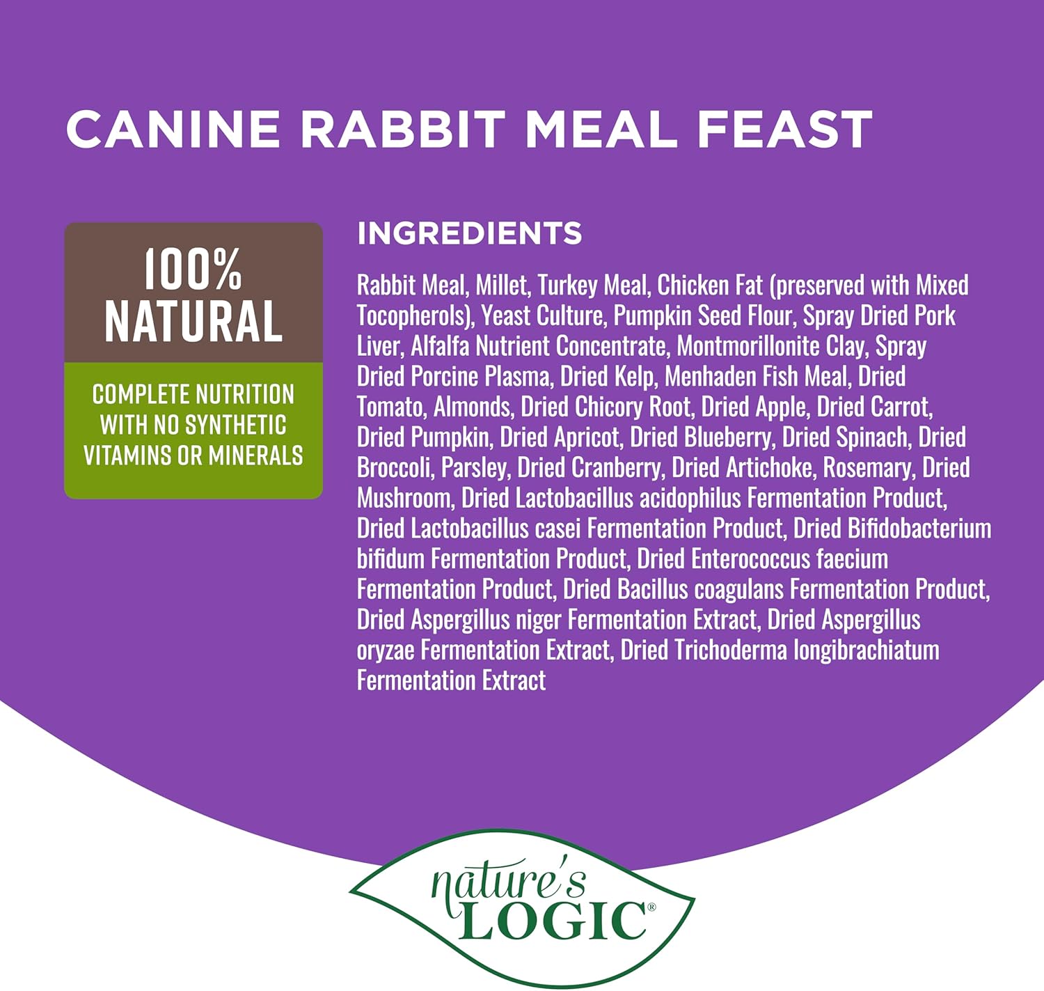 Nature's Logic Dry Dog Food - 100% Natural - No Synthetics - For All Ages, Sizes, Breeds - Free From Common Allergens, High Protein - Rabbit Meal Feast, 4.4lbs