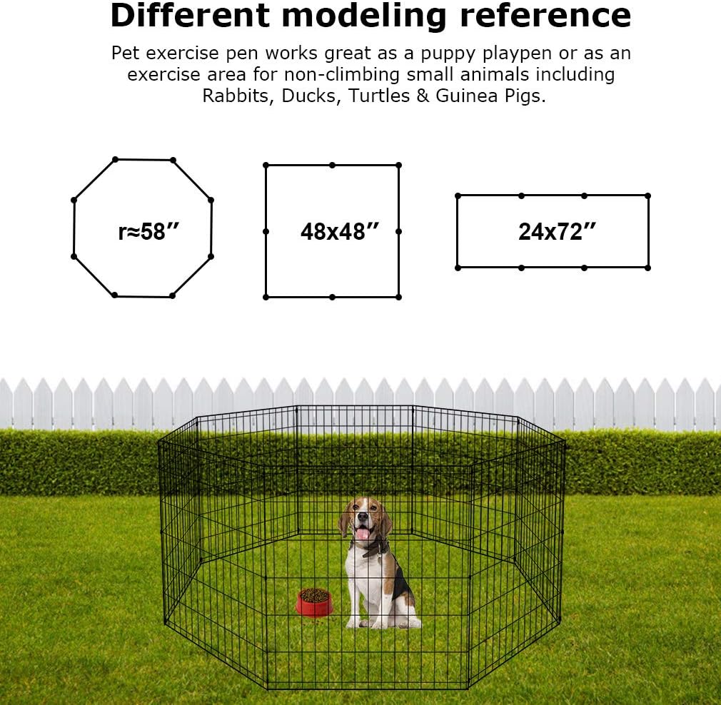 - ✔【STURDY AND DIFFERENT SHAPES METAL DOG FENCE】:The dog playpen made of high-strength solid wire,8-Panel pet fence design allow to configure into multiple shapes, pet fence to hold firmly to the ground while being used outdoors.Dog fence dog playpen exercise playpen for dog.