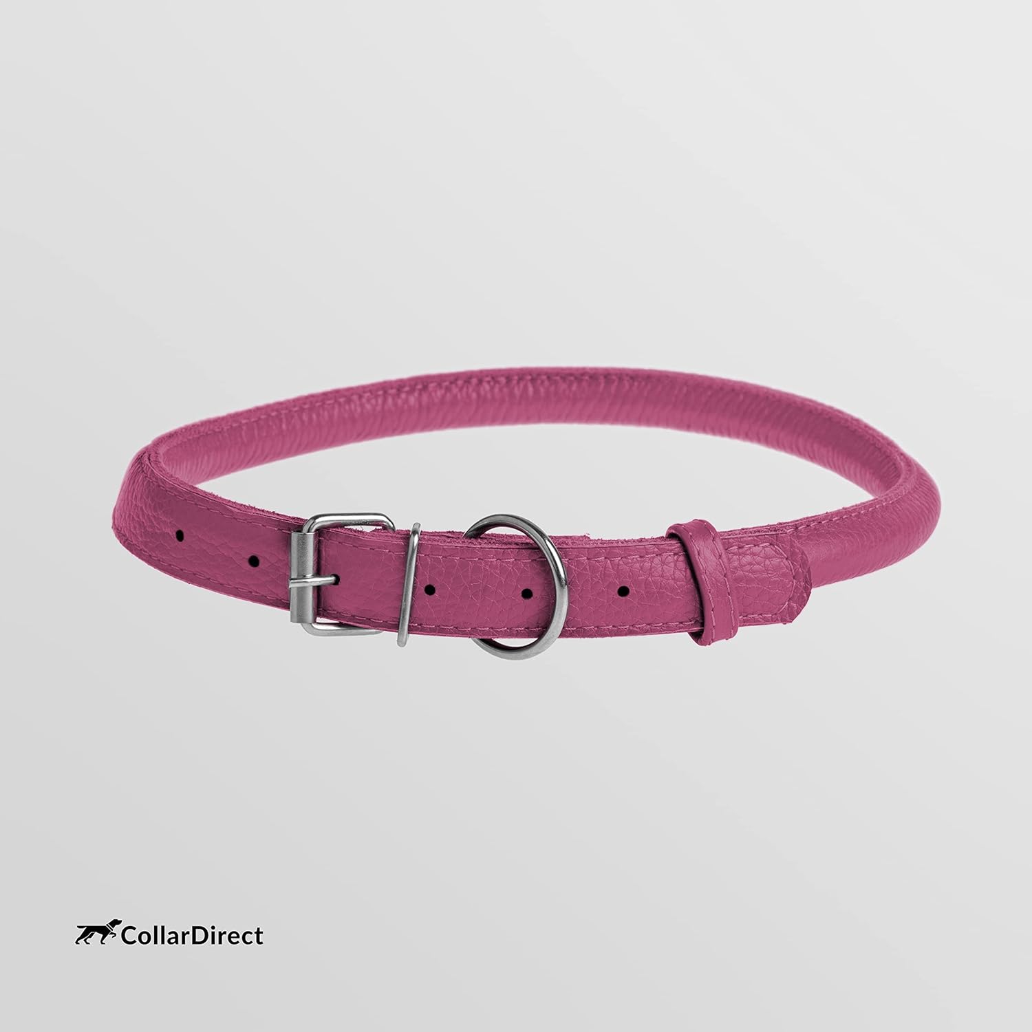 CollarDirect Rolled Leather Dog Collar, Soft Padded Round Puppy Collar, Handmade Genuine Leather Collar Dog Small Large Cat Collars 13 Colors (8-11 Inch, Pink Textured)