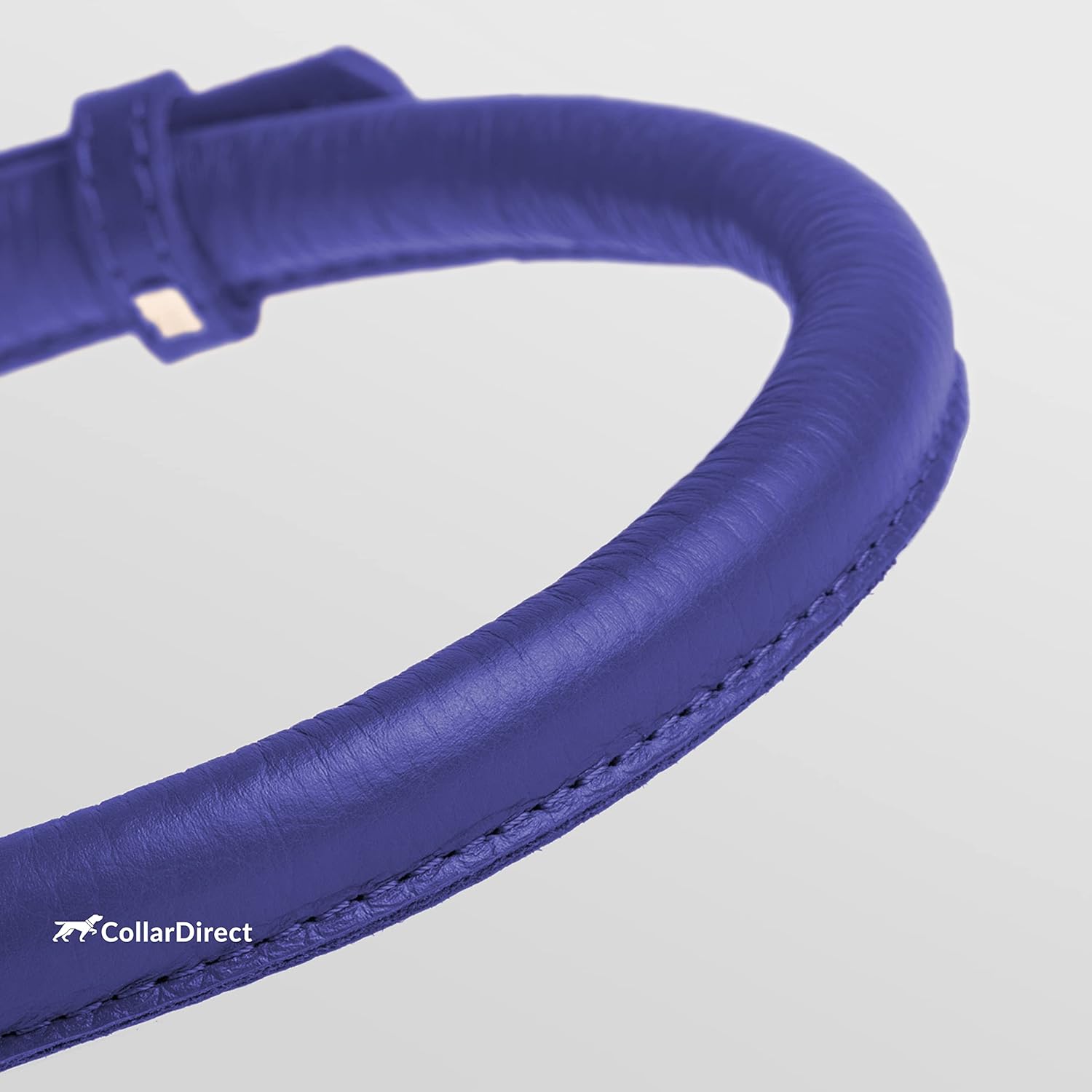 CollarDirect Rolled Leather Dog Collar, Soft Padded Round Puppy Collar, Handmade Genuine Leather Collar Dog Small Large Cat Collars 13 Colors (8-11 Inch, Purple Textured)