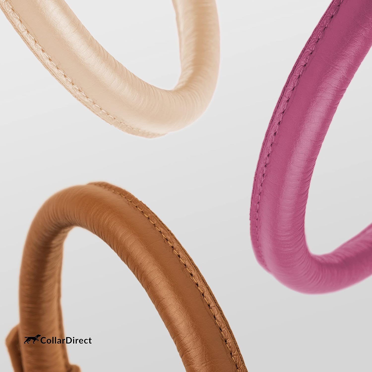 CollarDirect Rolled Leather Dog Collar, Soft Padded Round Puppy Collar, Handmade Genuine Leather Collar Dog Small Large Cat Collars 13 Colors (13-16 Inch, Pink Textured)
