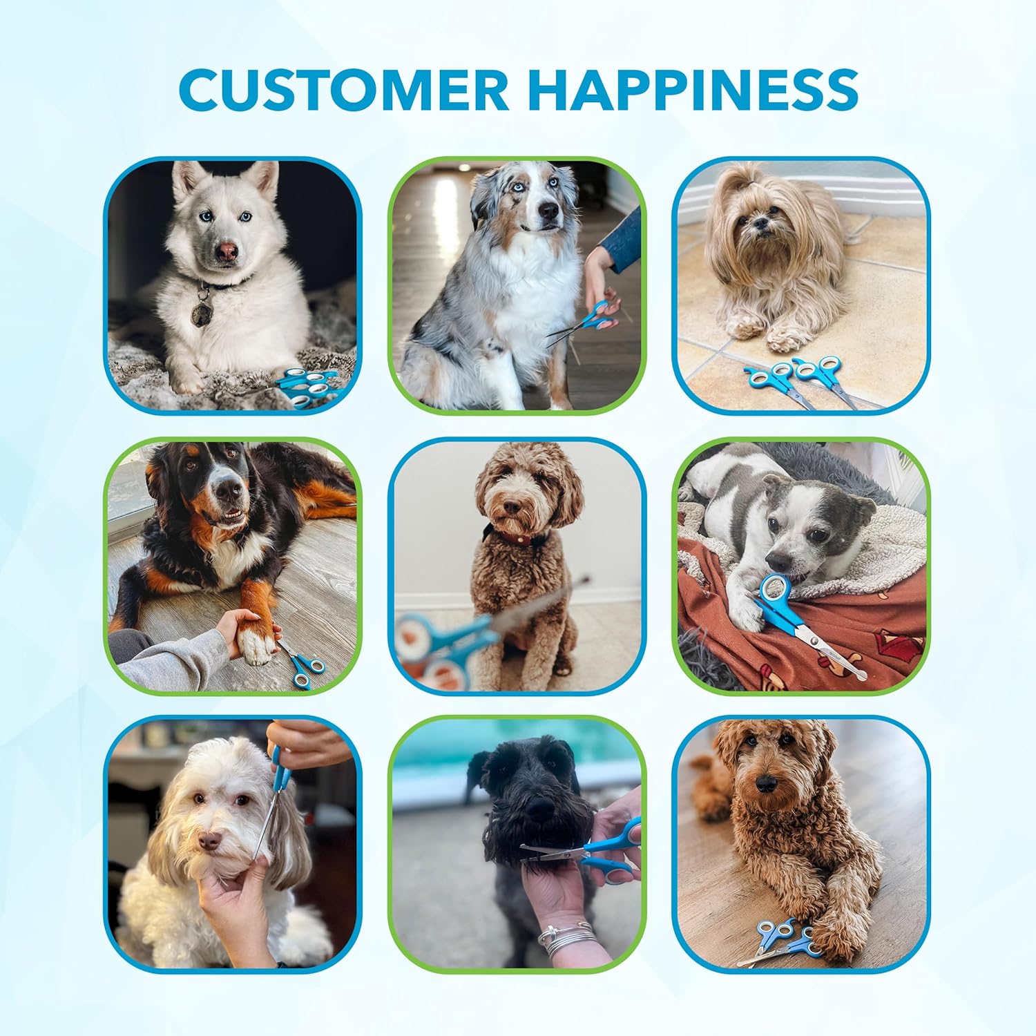 BOSHEL Dog Grooming Scissors for Dogs at Home (2 Pc) - Razor Sharp Stainless Steel Dog Scissors for Grooming - Professional Pet Scissor Set for Dogs & Cats - Best Pet Shears with Rounded Safety Tips