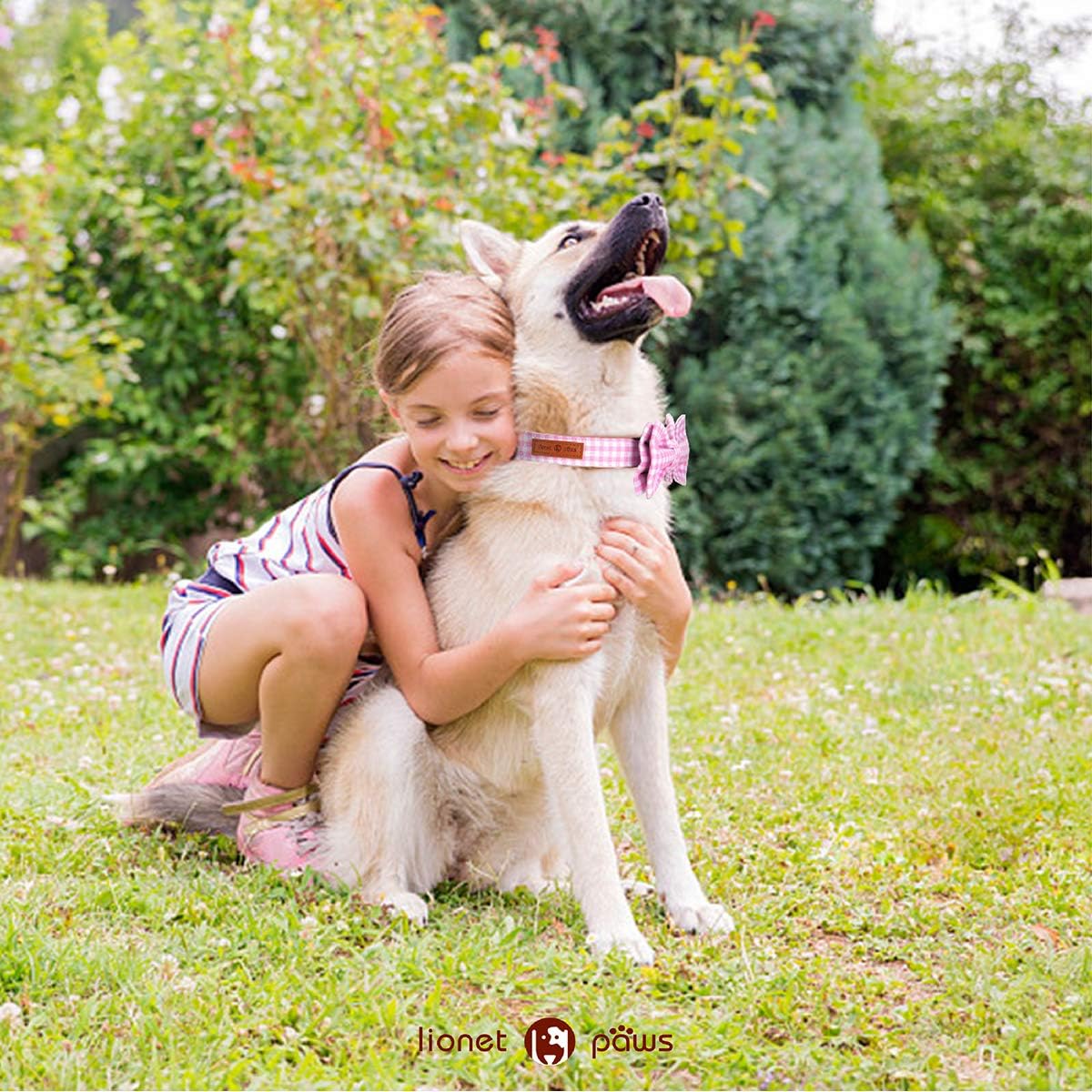 Lionet Paws Dog Collar with Bowtie, Comfortable Adjustable Cute Pink Gingham Bow Tie Collar for Female Dogs Gift, Large, Neck 16-24 inches