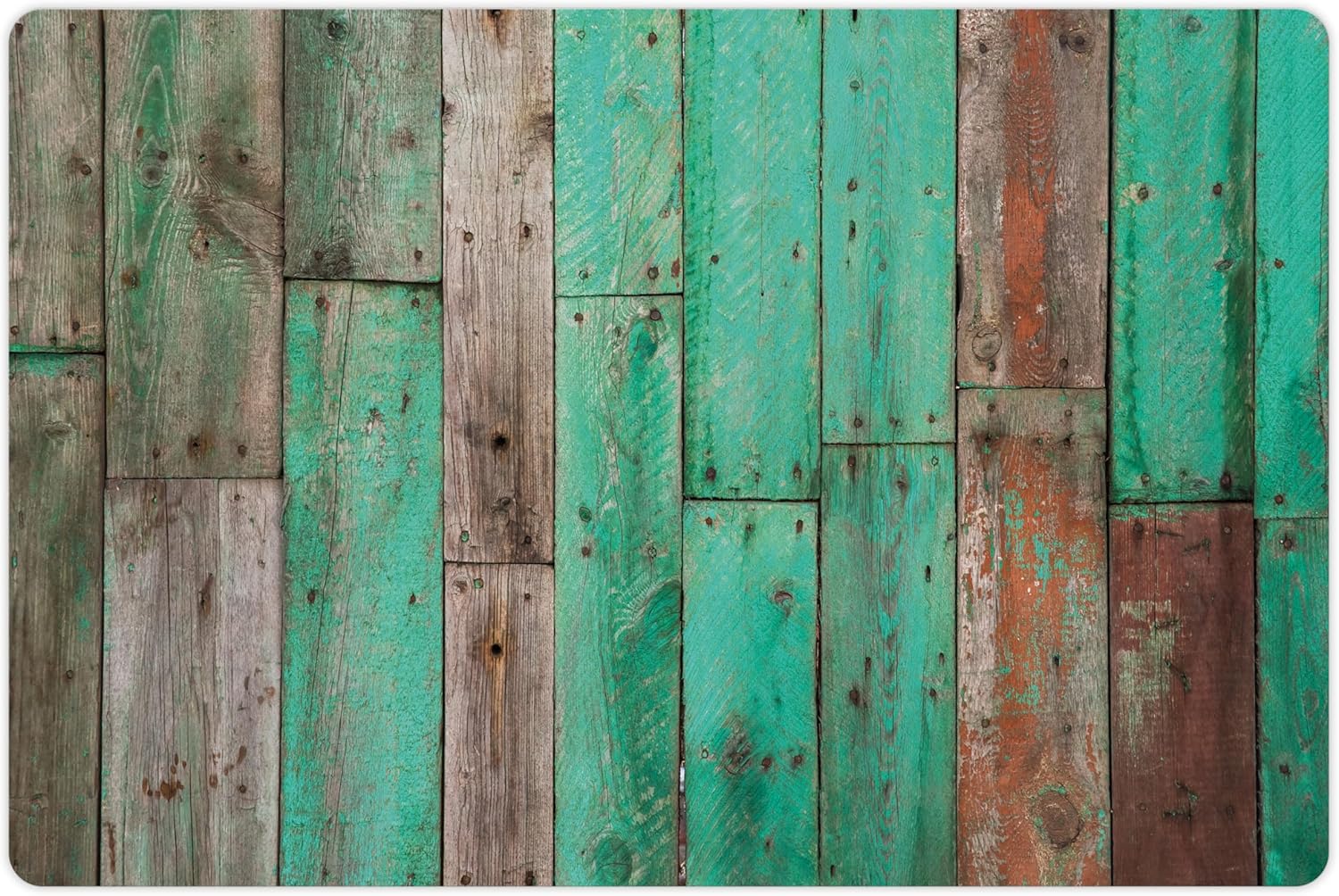 Lunarable Rustic Pet Mat for Food and Water, Stained Grunge Background with Distressed Piece of Pine Stick Sapwood, Non-Slip Rubber Mat for Dogs and Cats, 18" X 12", Green Brown