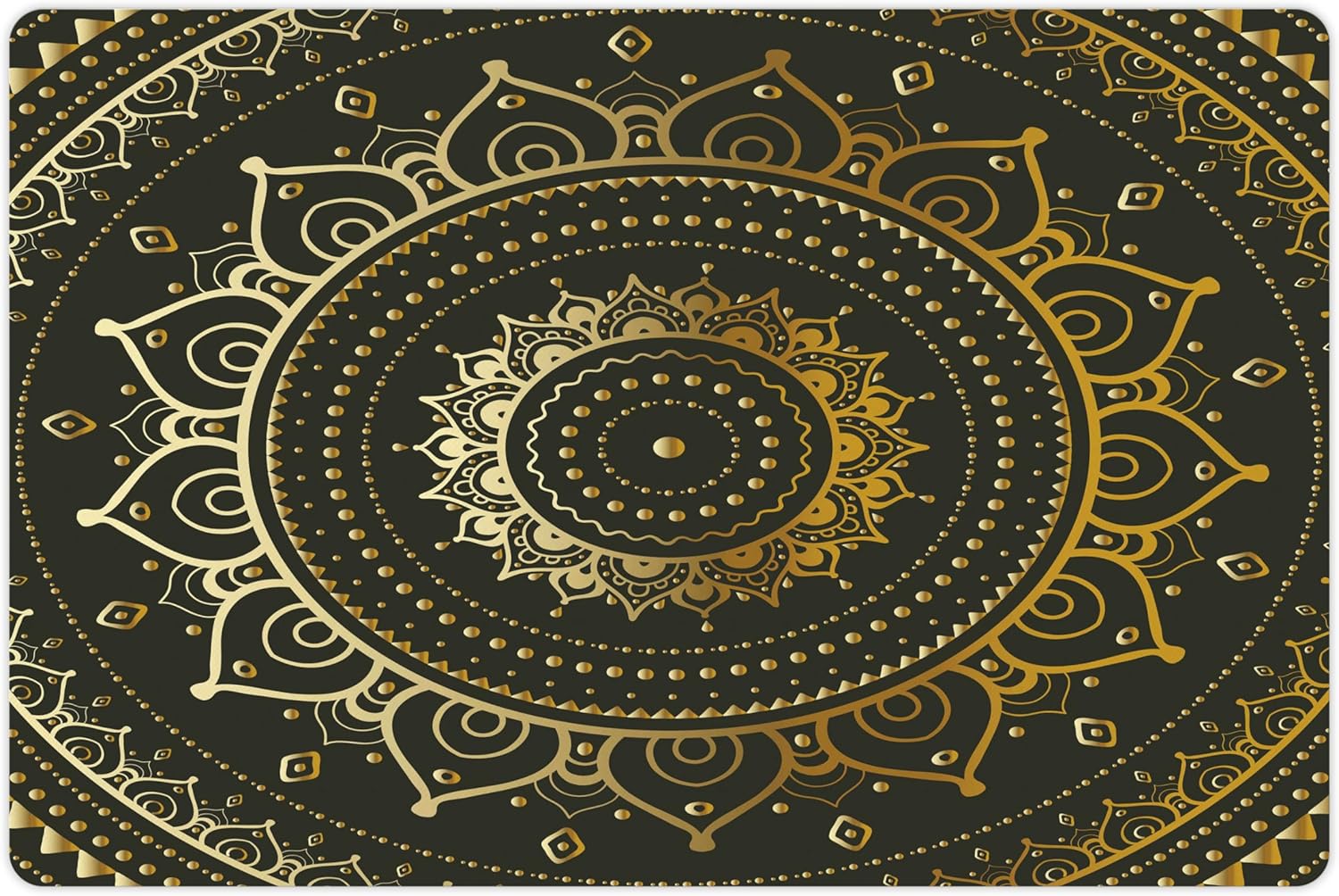 Lunarable Mandala Pet Mat for Food and Water, Tribal Harmonyic Art Illustration Print, Non-Slip Rubber Mat for Dogs and Cats, 18" X 12", Yellow Beige