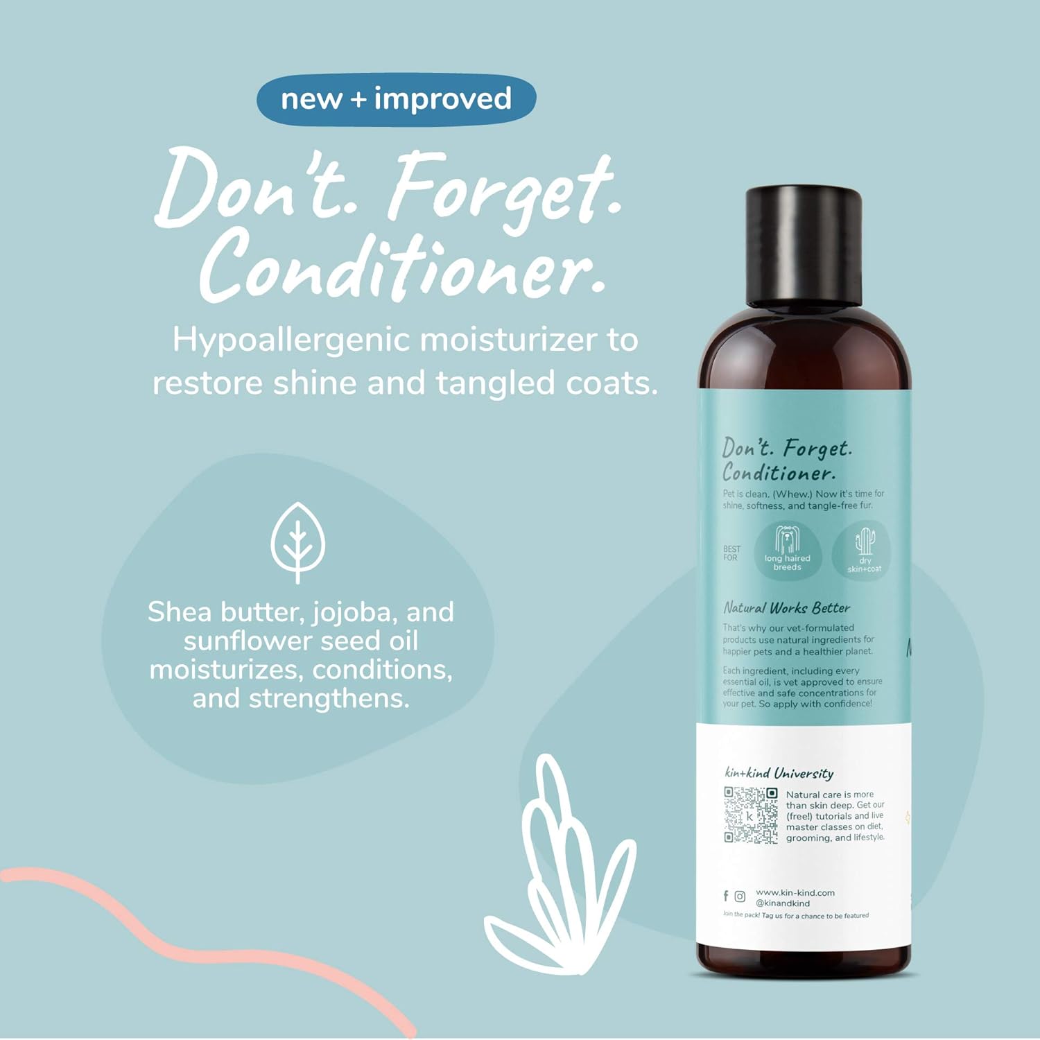kin+kind Cat & Dog Conditioner with Shea Butter All-Natural Formula with Betaine & Aloe Moisturize & Restore Coat for Dogs and Cats Shed Defender & Coat Defense Pet Defender S 12 fl oz Made in USA