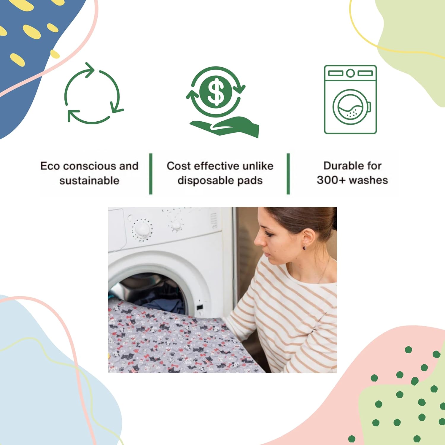 - Sustainable: Our reusable pee pads for dogs are an earth friendly, money-saving alternative to disposible dog pee pads, making them the ideal pet pads. So durable they withstand hundreds of washes.