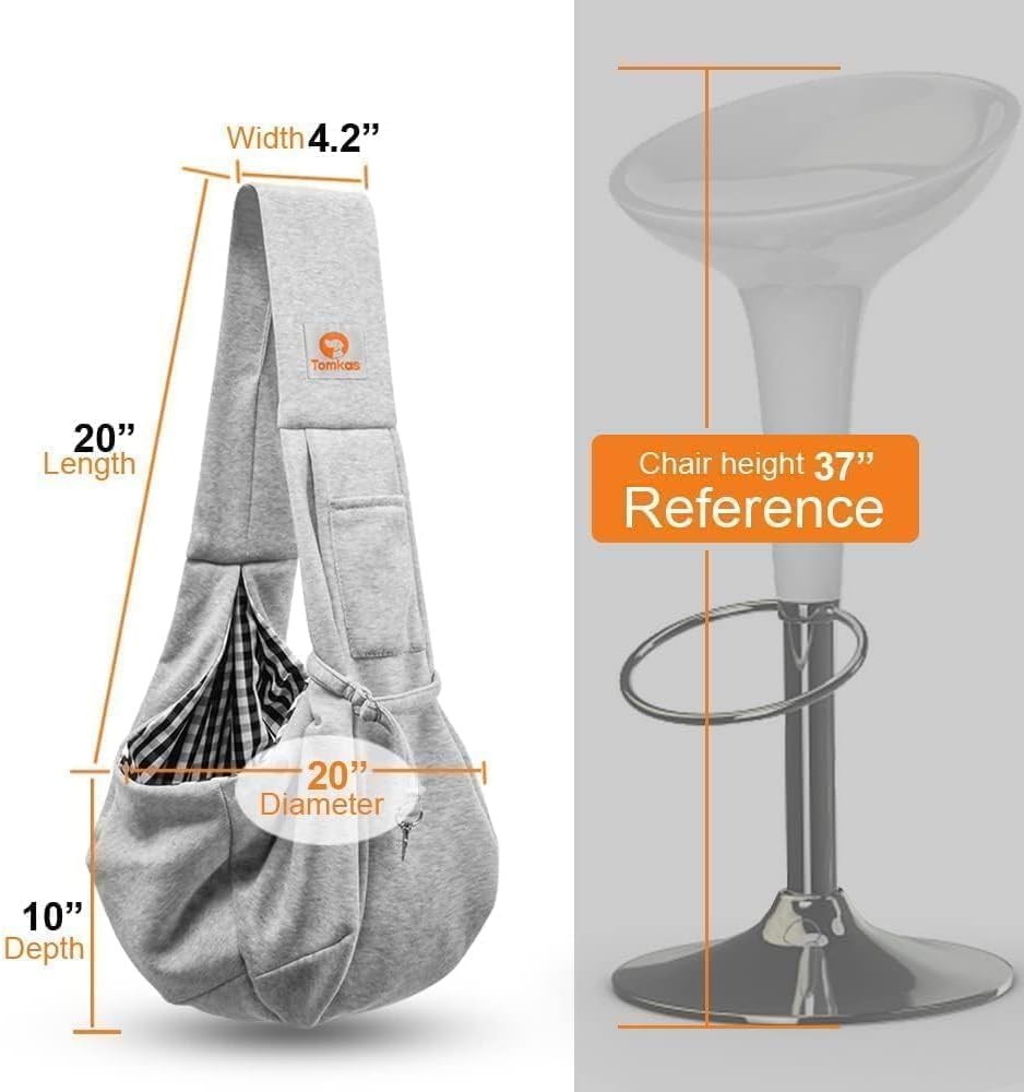 Tomkas Small Dog Sling Carrier - Classic Pocket & Classic Strap - for 3-10 lbs Pets(Grey)