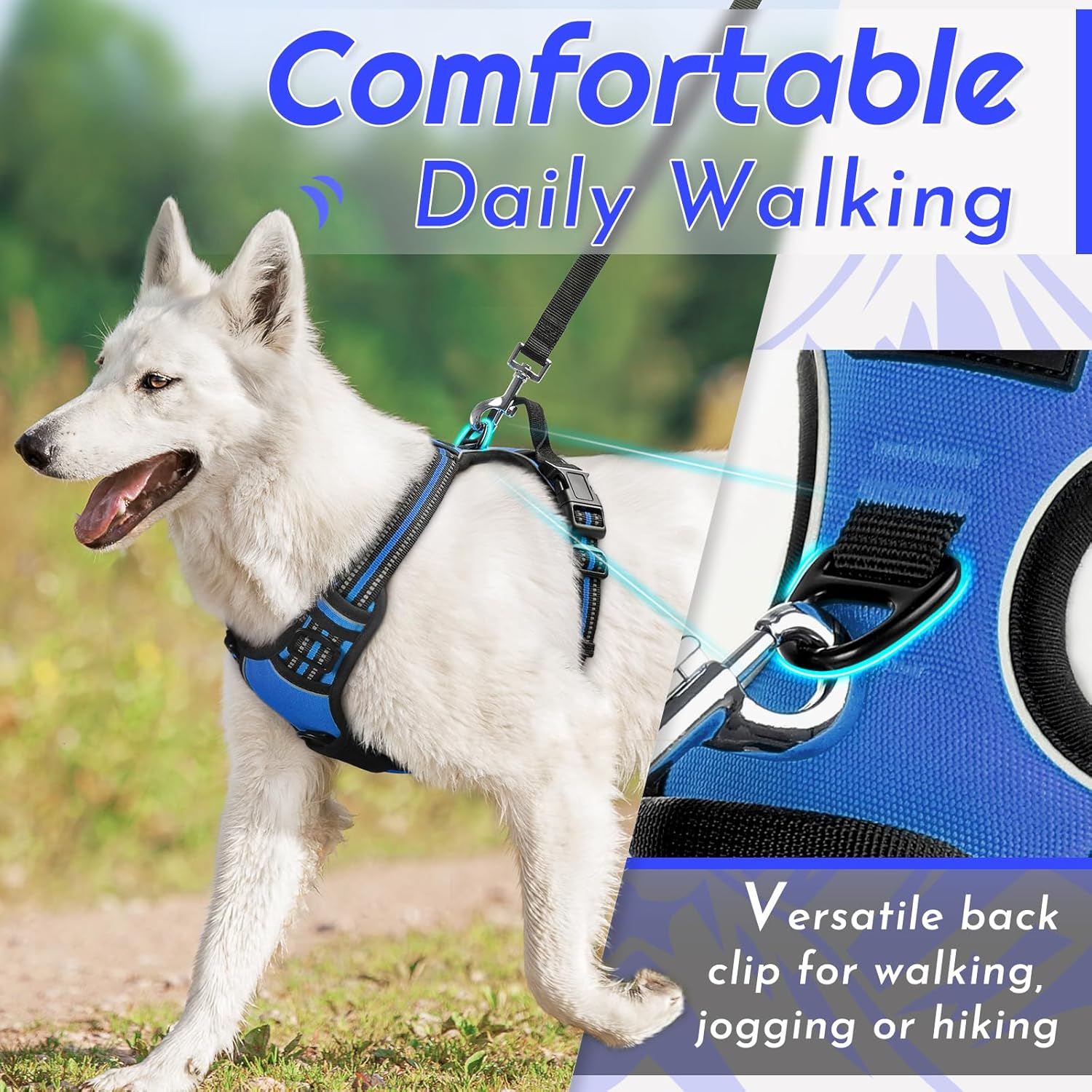 - No Pull & Better Control: Our no pull dog harness is typically designed with 2 sturdy metal leash rings for leash attachment. If you use the front hook on the chest, it will reduce the pulling, a perfect choice for dog training. The back leash ring is great for casual walks, jogging, hiking, etc.