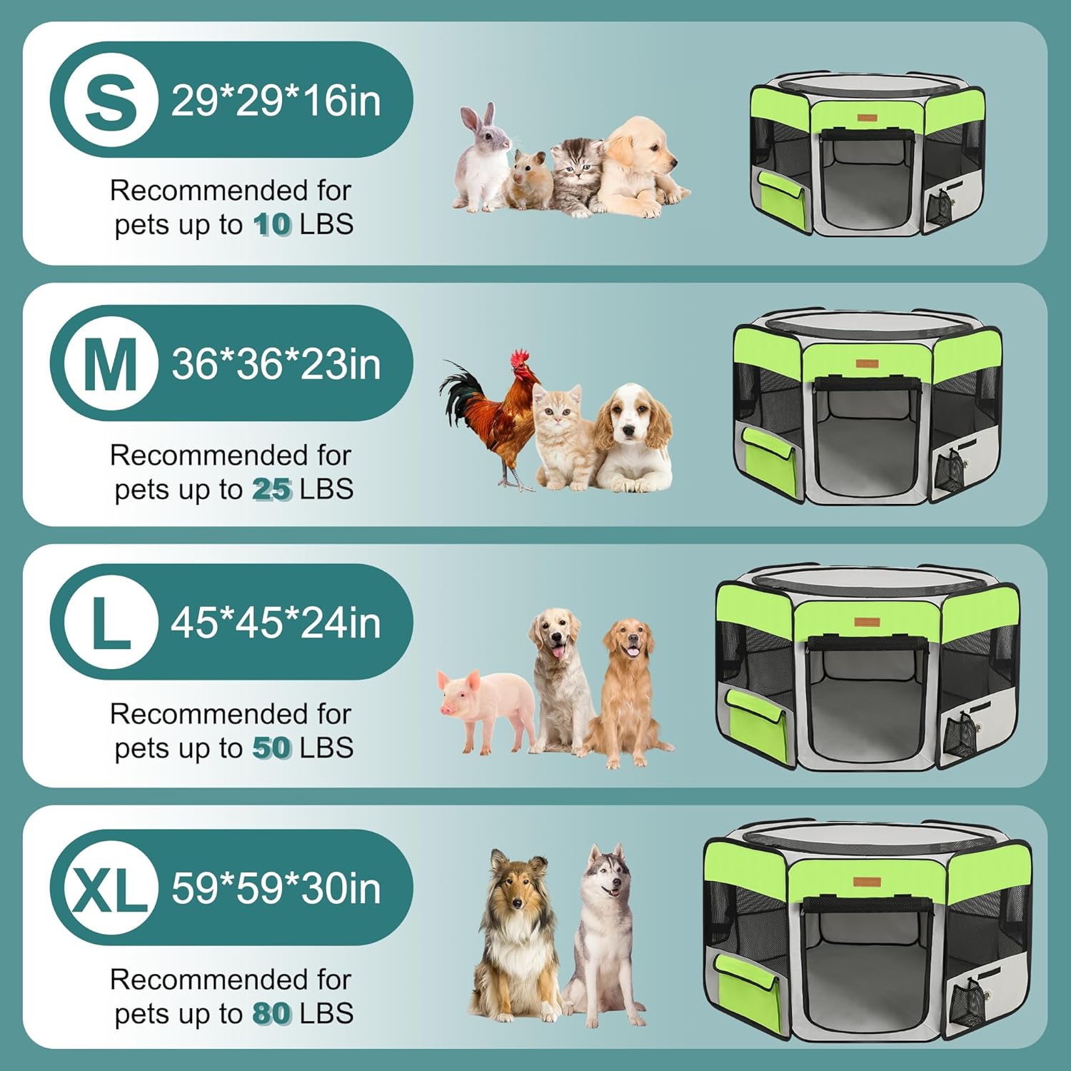 Dog Playpen, Portable Pet Play Pen for Cat, Puppies, Rabbits, Chickens, Foldable Large-Capacity Pet Tent for Indoor/Outdoor Travel Camping Green