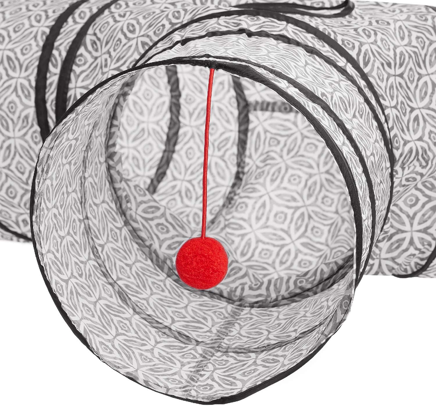 Tempcore 3-Way Collapsible Cat Tube Toys, Kitty Tunnel with Peek Hole, Ball for Cats & Kittens