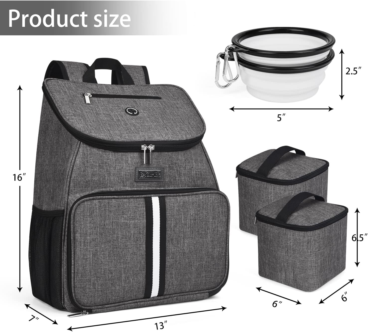 BAGLHER丨Dog Travel Bag, Airline Approved Pet Supplies Backpack, Dog Travel Backpack Accessories Set with 2 Silicone Collapsible Bowls and 2 Food Baskets, Gray