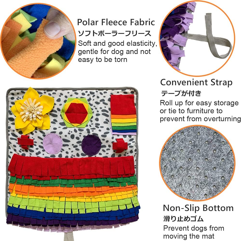 - RICH PUZZLE GAME: The snuffle mat allows dogs to hunt for food or treats hidden in the mat, good for mental stimulation and enrichment for your pup. There are different places to hide food including the messy grass, petals and varieties of pockets, which keeps your dog occupied for longer and avoids boredom and destructive behavior.