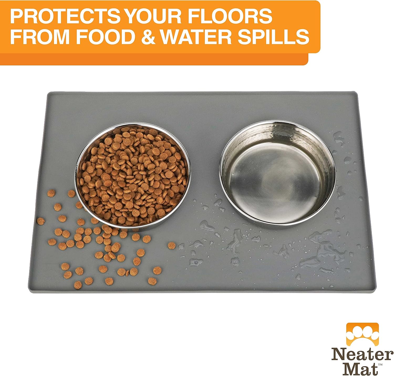 - PET MATS PROTECT FLOORS FROM SPILLS: Neater Mat pet mat goes under your cat or dog’s food and water bowls to catch any spills or splashes from getting onto your floor.