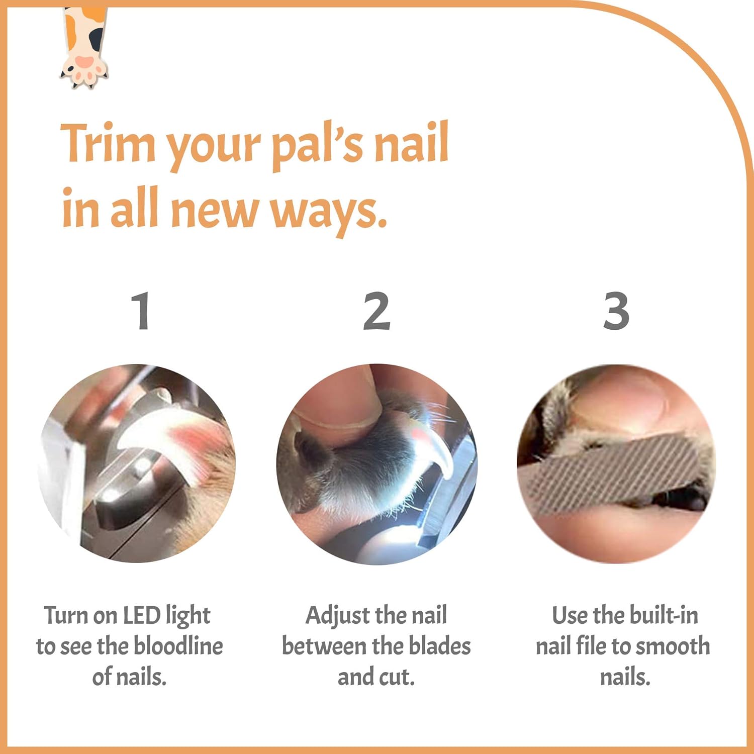 Reinvented Pet Nail Clippers for Your Pal - USB Rechargeable LED Light for Bloodline | Razor Sharp and Durable Blade | Vets Recommended Trimming Tool for Dogs and Cats