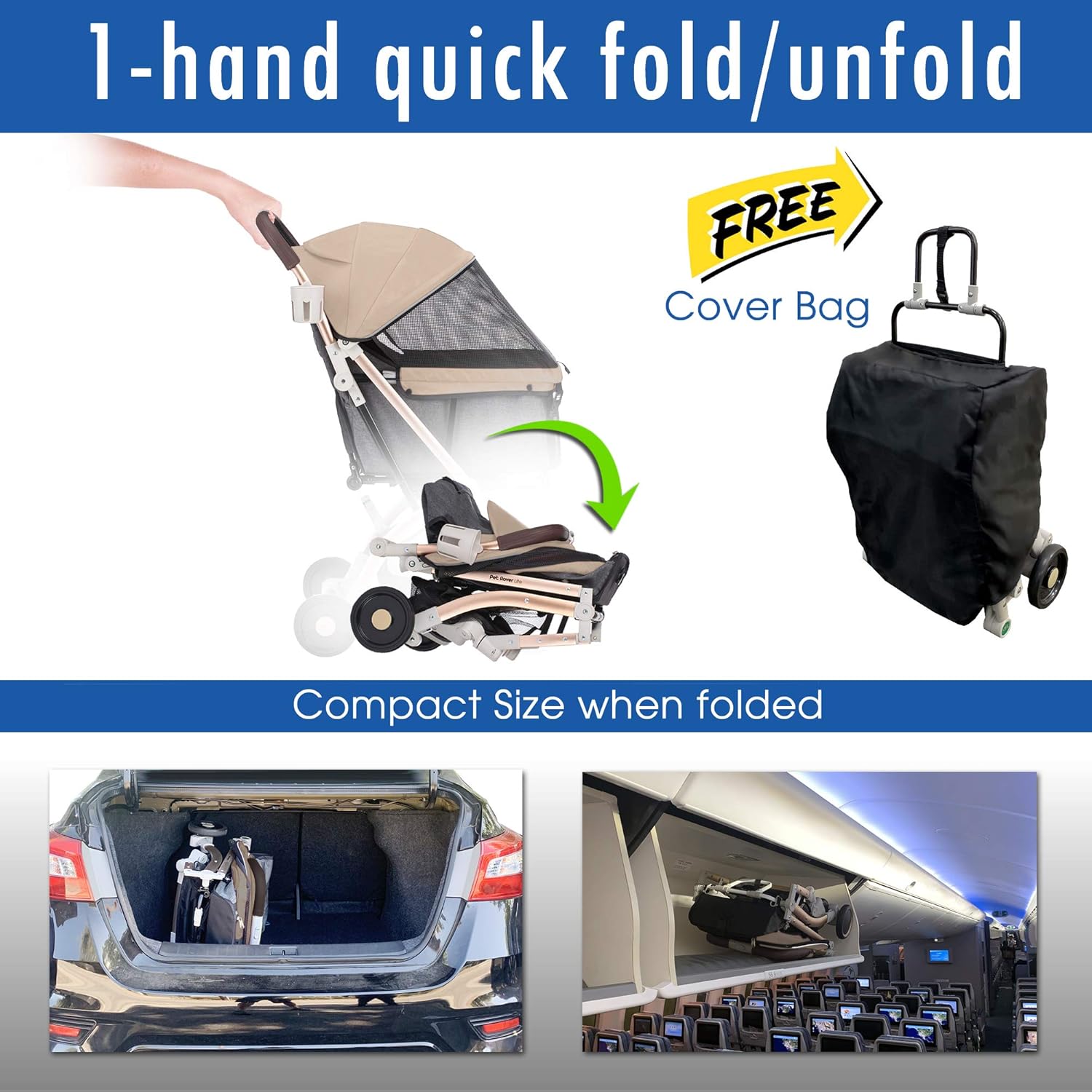 - 2nd-Generation model features upgrade fabrics, stronger hardware and improved tires SUPER TRAVEL-FRIENDLY This premium pet stroller is small and light making traveling with your pets a breeze. Its low-profile and compact design fold into an airplane overhead-bin or store in the trunk of a small car. A retractable towing handle provides easy maneuverability.