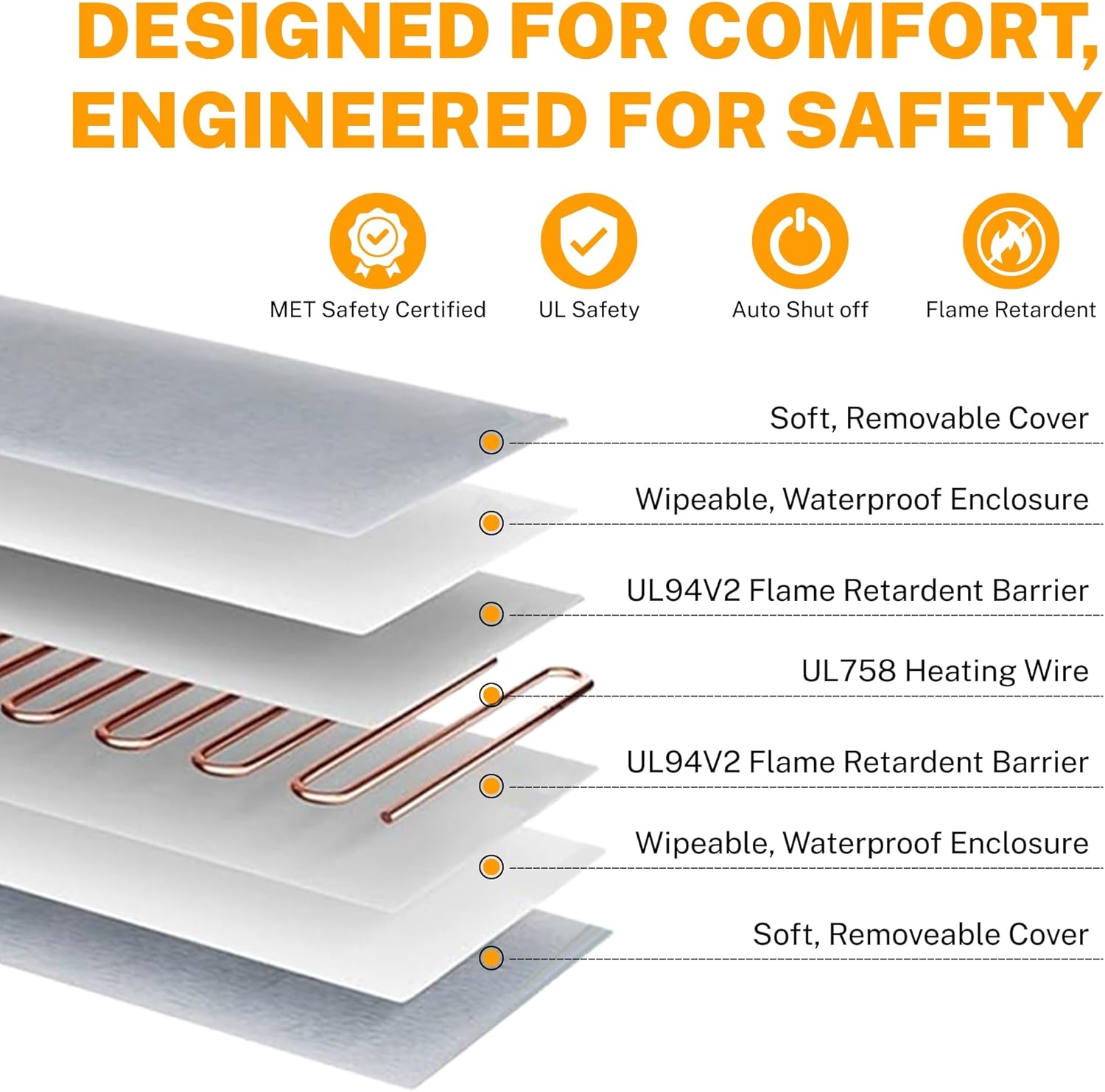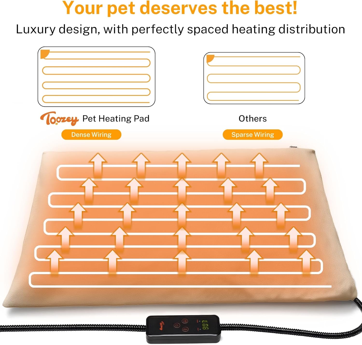 - ❤【Safety and Secure Structure】7-layer protective structure with UL-certified heating wire protect pets from burns. Soft PVC envelope with waterproof and flame-retardant function. Built-in intelligent temperature sensor in the heating pad to prevent overheating to protect pets. Don’t let your pets lay on the pet heating pad without a plush cover.