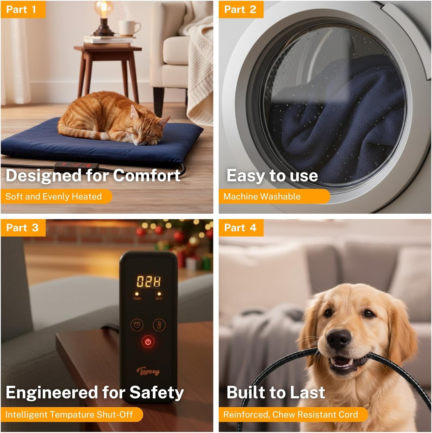 - ❤【Unique Heating Pad Design】Protect pets from chewing wires with dual resistant cord protection to ensure safety. Ultra-soft, machine-washable cover for comfort and convenience. If the inner pad becomes dirty, you just need to wipe the inner pad with a damp cloth instead of soaking it in water.