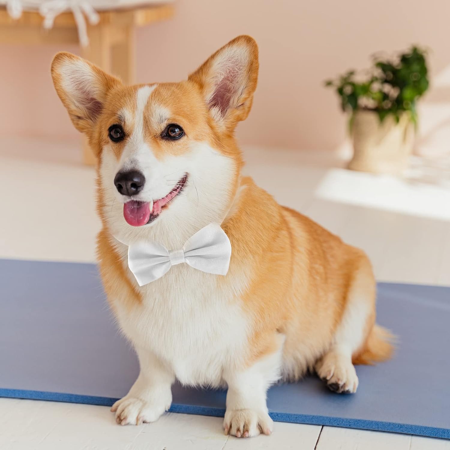 - SUITABLE ALL -- classy white tuxedo pet bowties fits dogs/cats of different breeds. Perfect dog bow ties for large dogs and medium dogs for either photography, parties, birthday, valentines, celebration, proms, Halloween, photoshoot, Christmas graduation pets grooming, or daily dog formal wear wear. Add a touch of elegant for our pet.