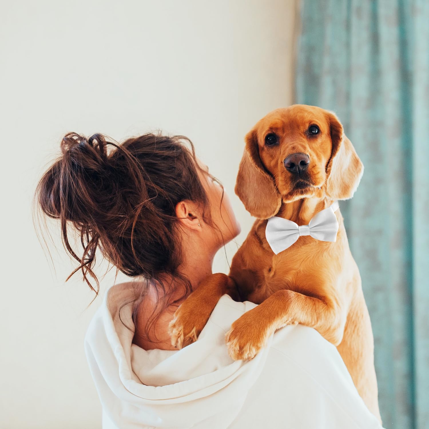 KOOLMOX Dog Bow Tie White, Formal Dog Bowtie with Adjustable Dog Collar for Medium and Large Dogs Cats Pets Wedding Christmas Birthday Party Holiday Homecoming Costumes, 1 Piece White