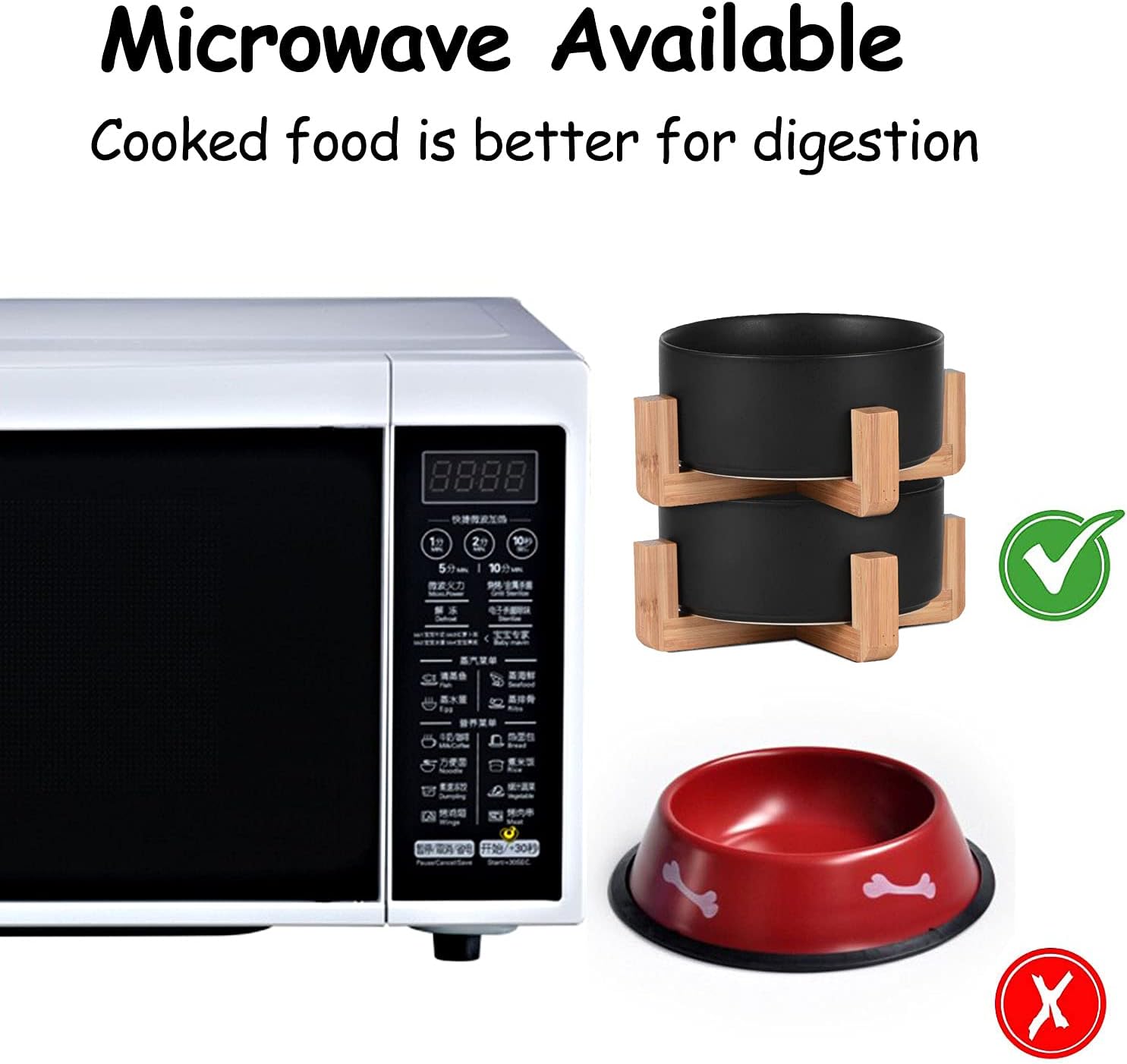 - DISHWASHER MICROWAVE SAFE - Ceramic pet bowls is made of Porcelain Ceramic with wood frame to keep from sliding on the floor. Ceramic cat dog bowls are high temperature ceramic, non-toxic durable. and the cat dog food water bowls conveniently dishwasherable so it can be easily cleaned. No Fuss.