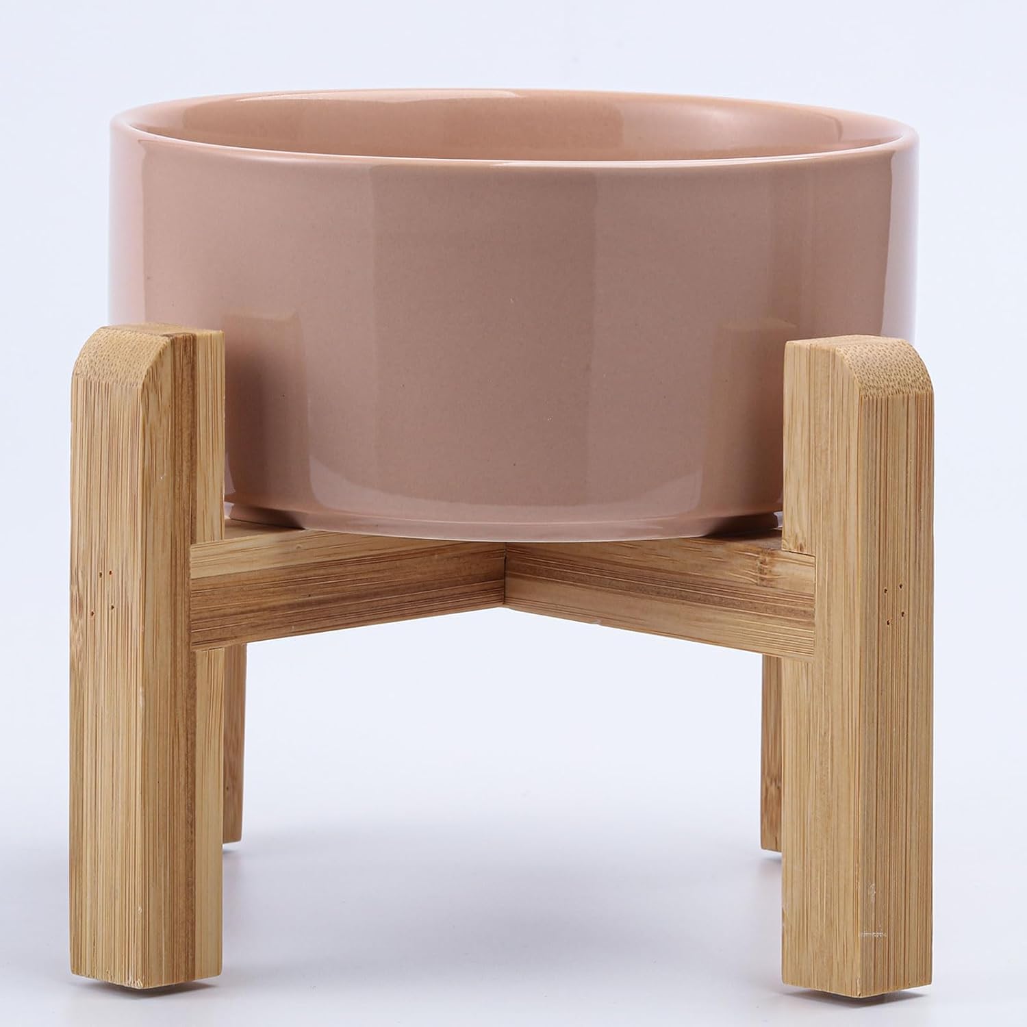- NON SLIP WOOD STAND -You can get two different heights by flipping the bamboo stand,the elevated cat bowls are perfect for cats and small size dogs from different stages of childhood to adulthood, The wood stand on the bowls stopping ceramic cat dog bowl from sliding around, Keeps pet food and water in the bowls.