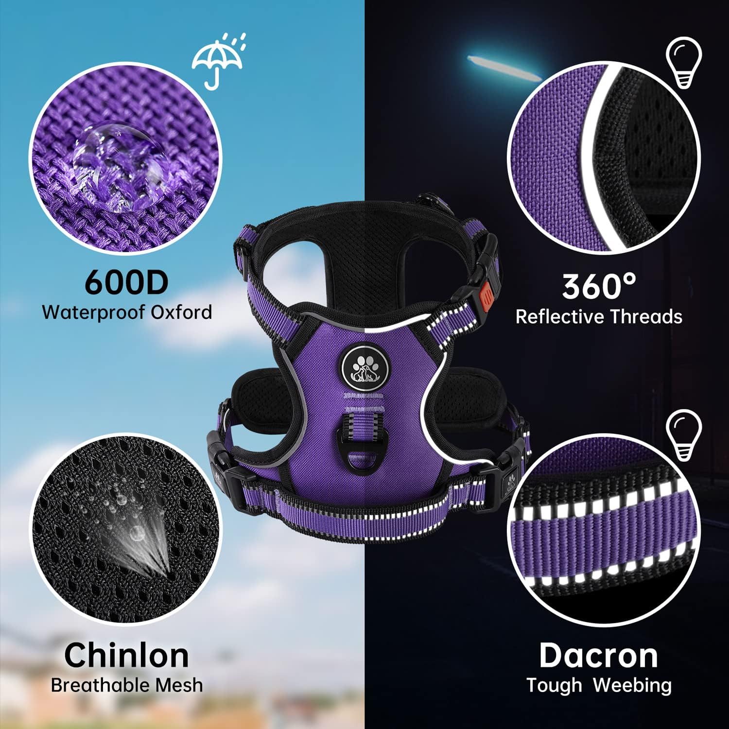 NESTROAD No Pull Dog Harness,Adjustable Oxford Dog Vest Harness with Leash,Reflective No-Choke Pet Harness with Easy Control Soft Handle for Large Dogs(Large,Purple)