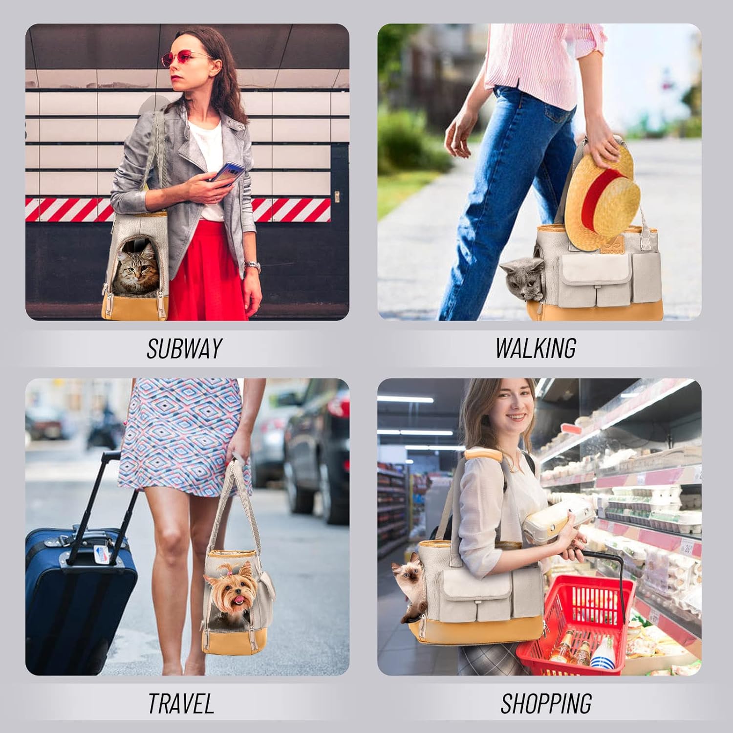 Dog Carrier, Cat Carrier, Pet Carrier, Foldable Waterproof Premium PU Leather Oxford Cloth Dog Purse, Portable Tote Bag Carrier for Small to Medium Cats and Small Dogs