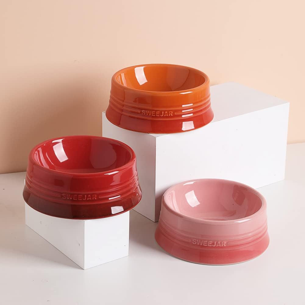 - Non Skidding - SWEEJAR dog bowls are made of food grade porcelain, microwave & dishwasher safe, easy to clean. The ceramic is heavy to help keep the bowl upright when dog eat food. No messy floors to clean.