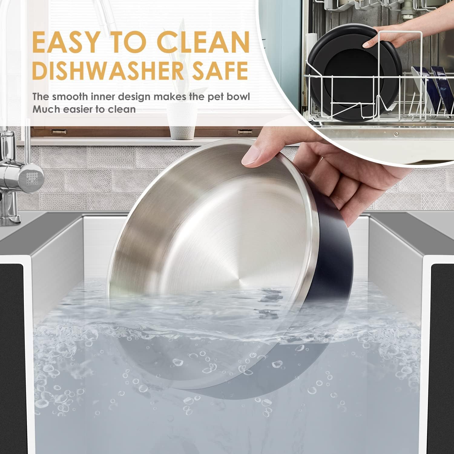 - SAFETY DESIGN-Pet feeding bowl adopts mirror polishing process, which has an elegant look and smooth touch. The flat edges will not hurt the dog's tongue, rust-proof and easy to clean.