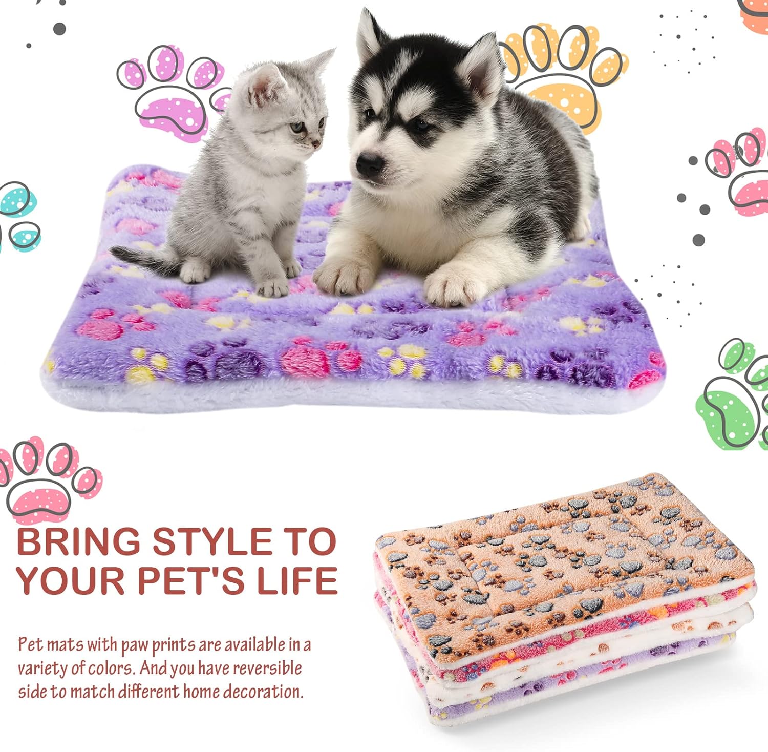 Tuanse 4 Pack Ultra Soft Dog Cat Bed Mat with Cute Prints Reversible Fleece Dog Crate Kennel Pad Cozy Washable Thickened Hamster Guinea Pig Pet Bed Mat for Small Animals(13 x 19 Inches,Vivid Color)