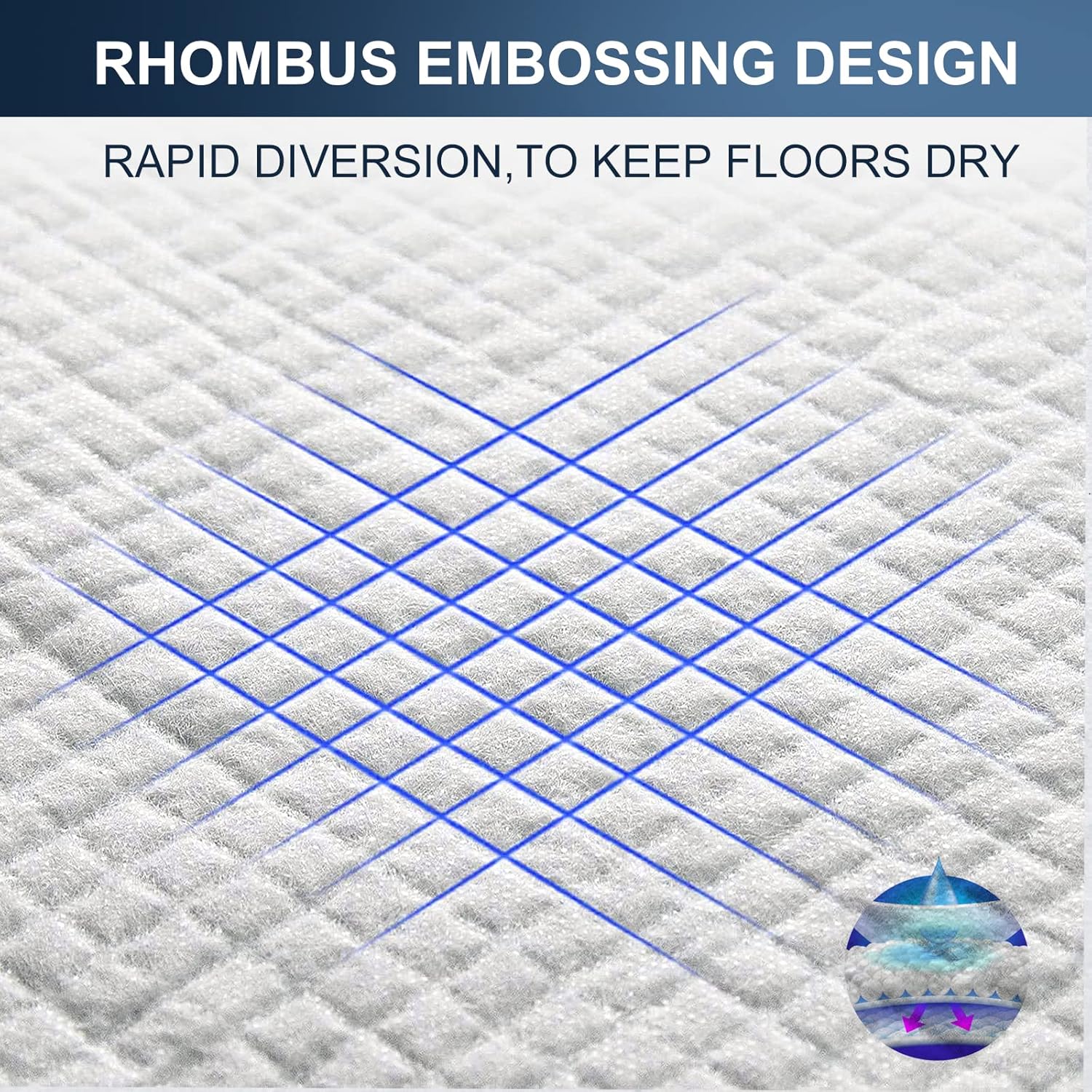 - 【Supper Liquid Lock-in Diamond Quilting Design & Quick Dry】diamond quilting design absorb liquid faster and polymer turns liquid into gel, preventing tracking, liquid overflow, and odor. Even handy for cold wet weather, make dog training pads are easy to pick up without leakage or overflow