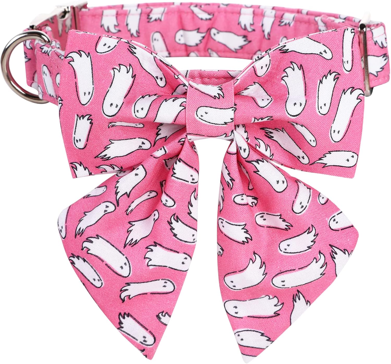 Lionet Paws Dog Collar with Bowtie, Halloween Bowtie for Dogs, Adjustable Comfortable Dog Collar Girl, M, Neck 13.5-22 in