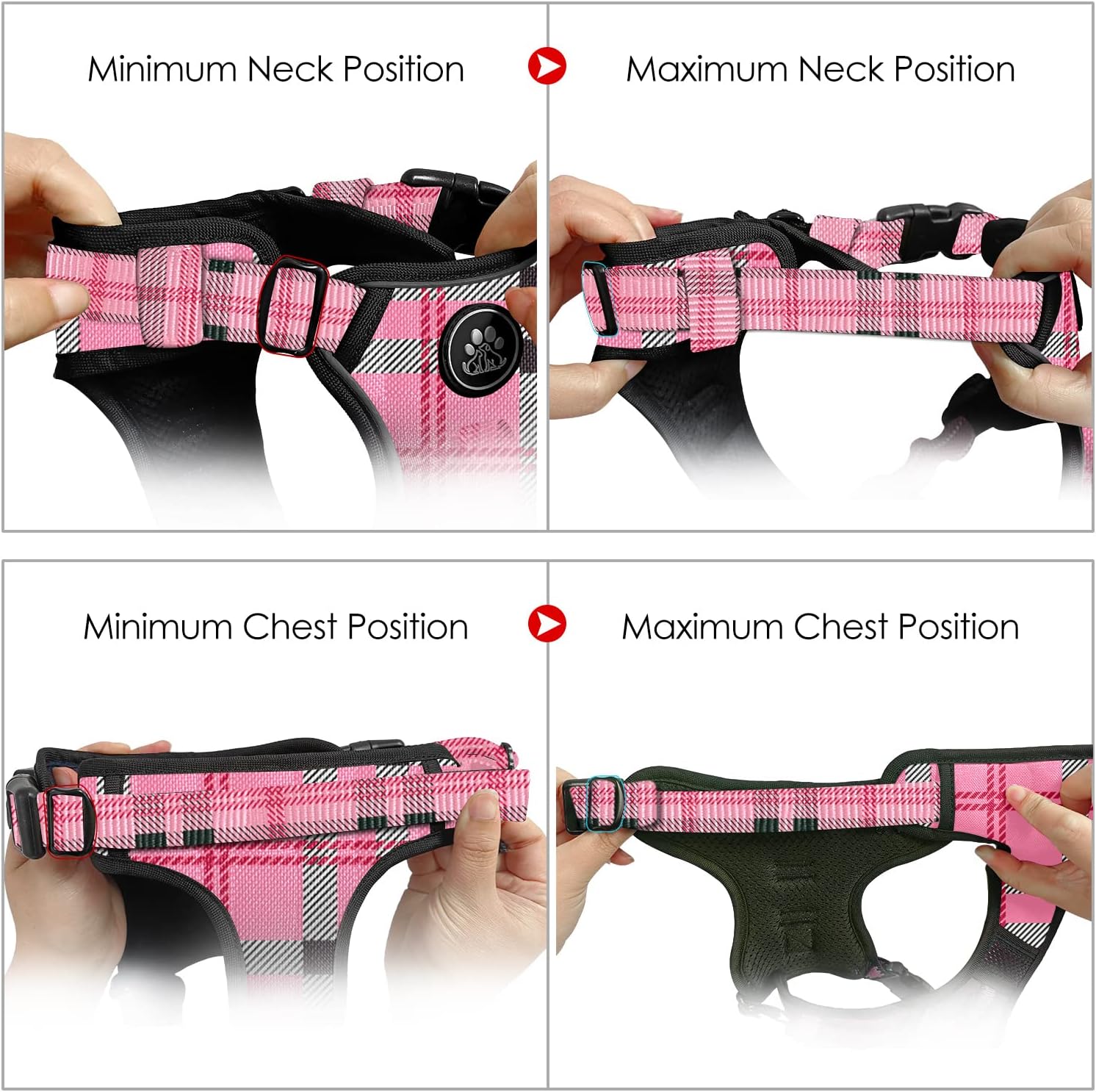 - 【EASY ADJUSTMENT】This no choke dog harness design with 4 fully adjustable straps (2 shoulder and 2 chest straps) which can be adjusted to the most fitting size, prevents the dog from breaking free while maintaining maximum comfort