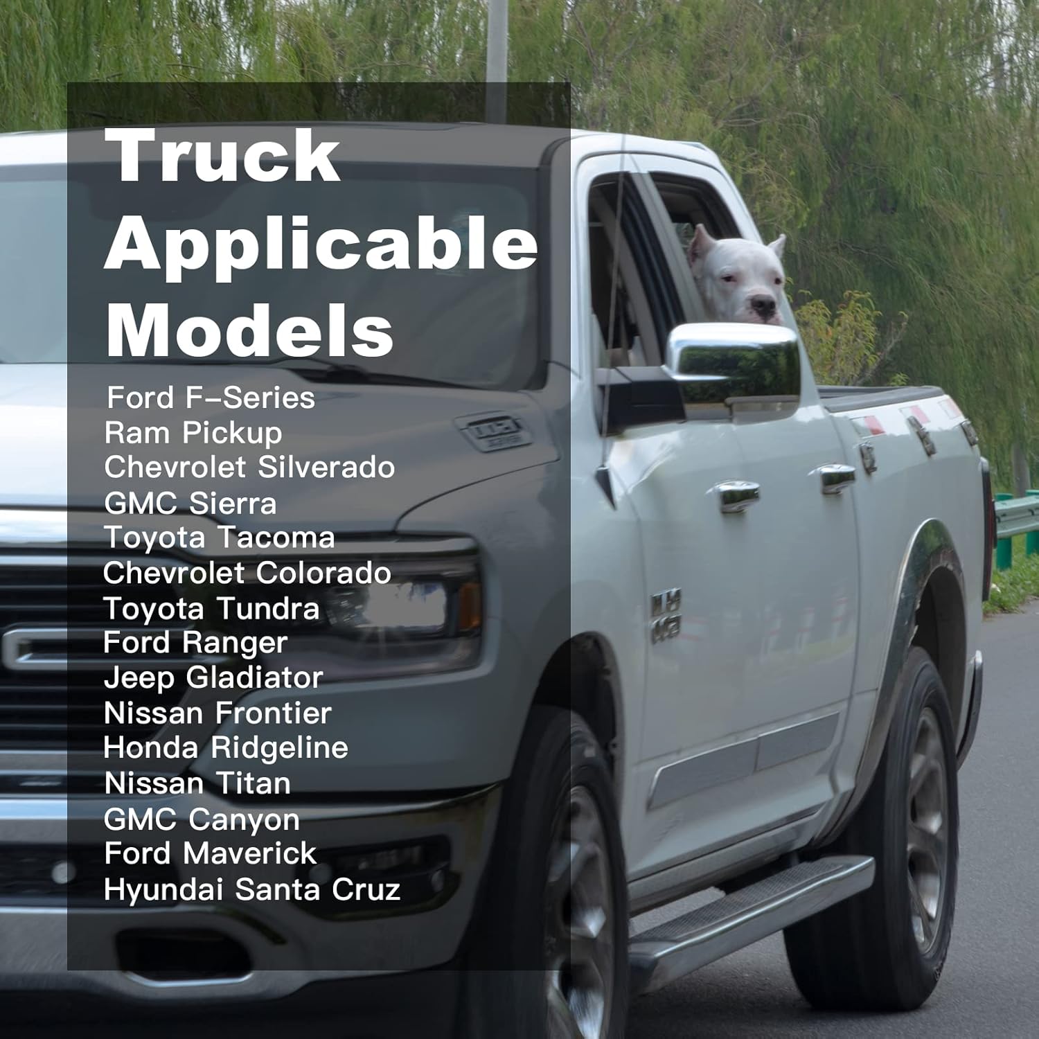 - CUSTOMIZED FOR TRUCK: Meginc car dog seat covers are uniquely designed and customized for truck. Such as Ford F-Series/Ram Pickup/Chevrolet Silverado/GMC Sierra/Toyota Tacoma/Chevrolet Colorado/Toyota Tundra/Ford Ranger/Jeep Gladiator/Nissan Frontier/Honda Ridgeline/Nissan Titan/GMC Canyon/Ford Maverick/Hyundai Santa Cruz. Suitable for middle size pickup