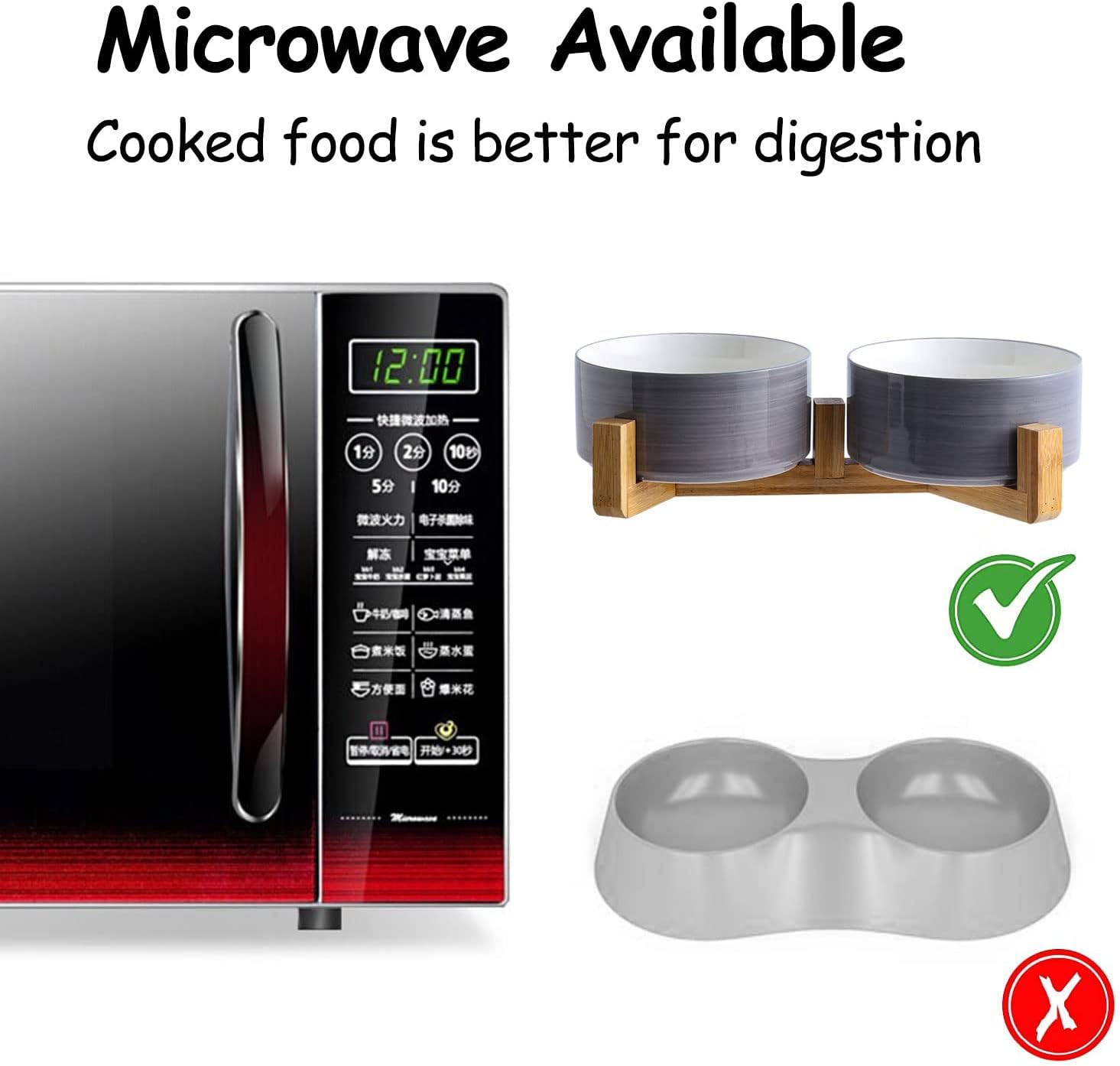 - Non Slip Stand: the wooden stand on the dog food bowl is sturdy and heavy enough and do not slide easily, even the naughty dog cat can't flip it over, cutting down drastically on making a mess.