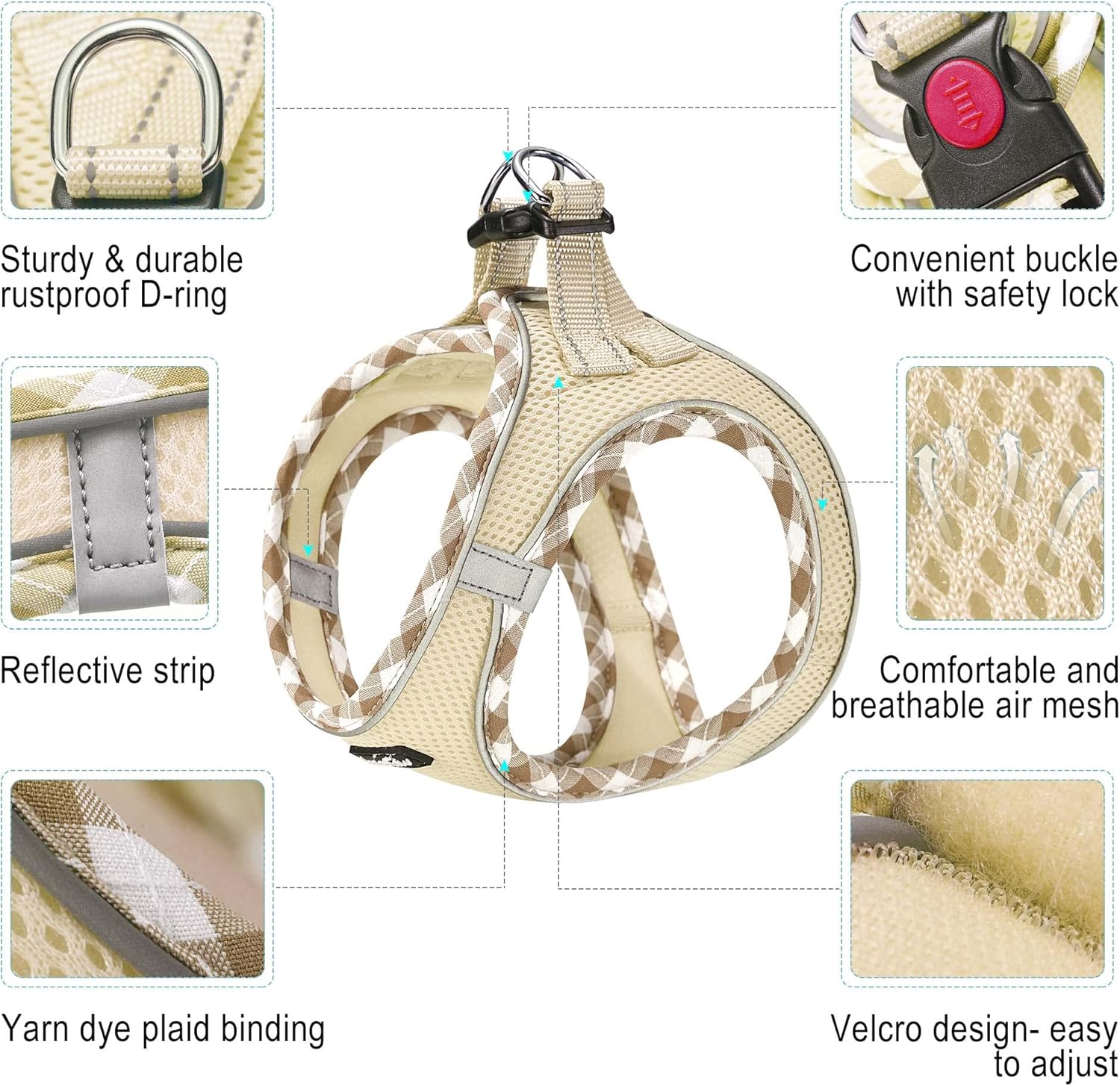 - 【 AIR MESH 】- Dog harness is made of durable thickened air mesh that featured with breathable, lightweight, comfortable, and quick-dry