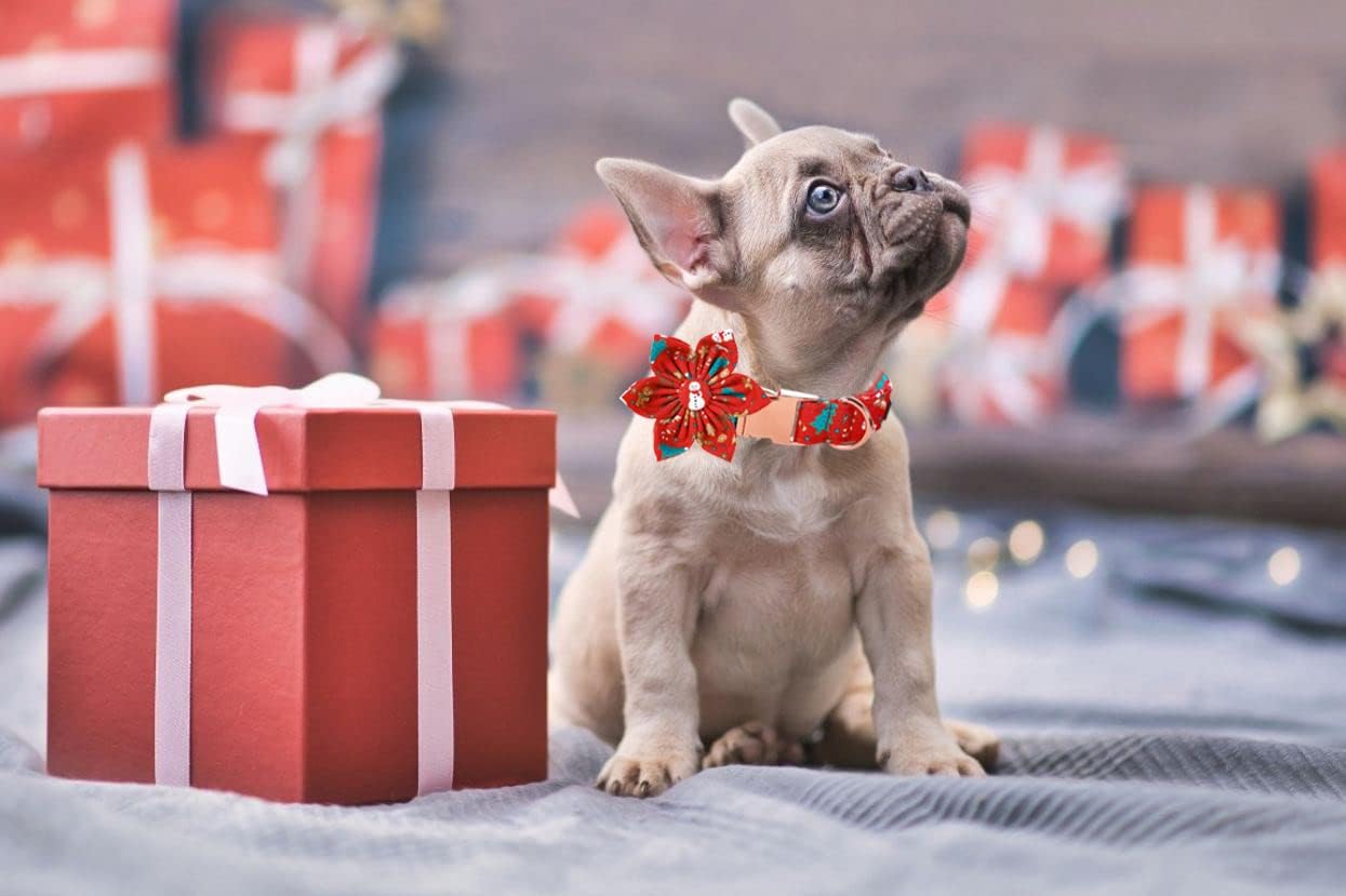 Lionet Paws Christmas Dog Collar with Flower, Dog Flower Collar with Metal Buckle for Dogs, Adjustable Comfortable Dog Collar Girl Gift, XL, Neck 16-26 in