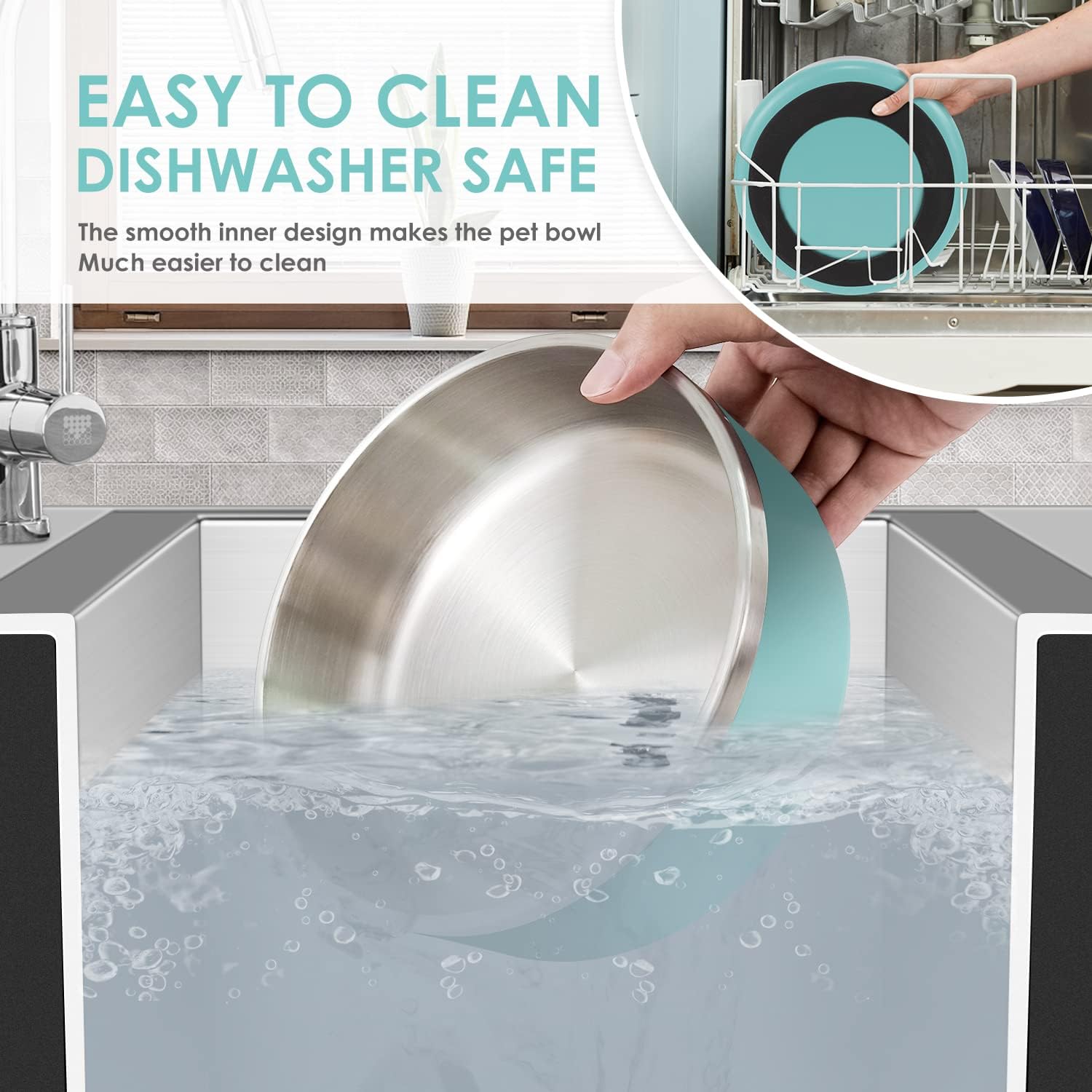 - SAFETY DESIGN-Pet feeding bowl adopts mirror polishing process, which has an elegant look and smooth touch. The flat edges will not hurt the dog's tongue, rust-proof and easy to clean.