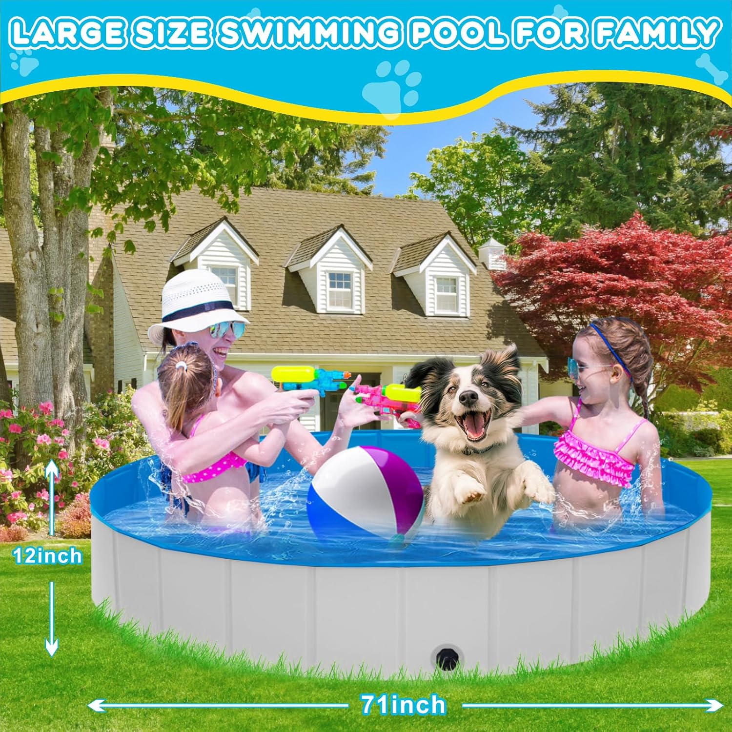 - Super Easy Using: This foldable pool don't need to inflate, quickly set up and fold up at indoor or yard, compare with baby pools, our kids pool won't pop easy the folding design makes the dog bathtub store compact, saving your place with this pool for dogs