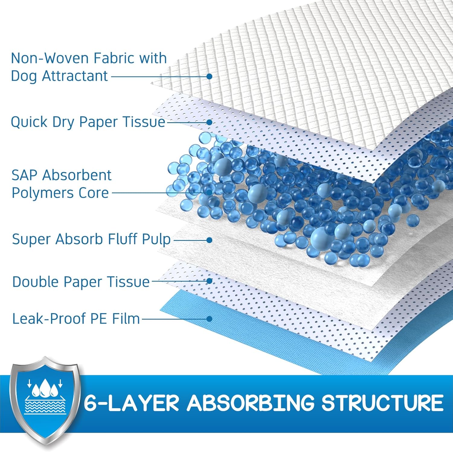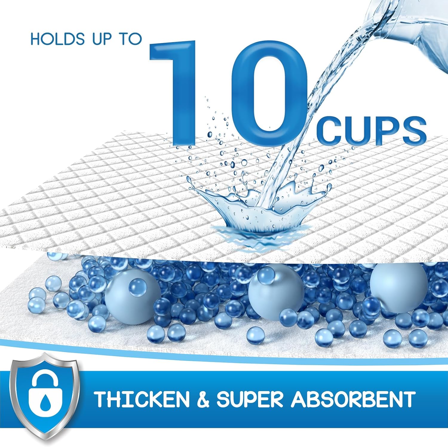 - 6-Layer Leak-Proof System: Advanced 6-layer construction features a diamond-quilted top layer for rapid liquid direction, a super-absorbent polymer core that locks away moisture as gel, and a leakproof backing to guarantee full protection for your floors