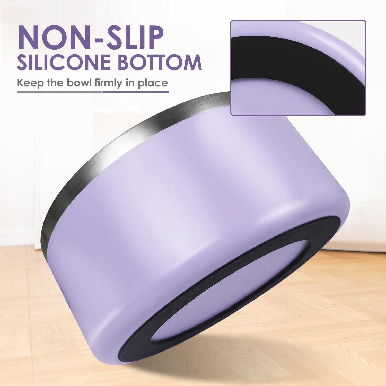 IKITCHEN Dog Bowl for Food and Water, 40 Oz Stainless Steel Pet Feeding Bowl, Durable Non-Skid Insulated Heavy Duty with Rubber Bottom for Medium Large Dogs (40 Ounces/5 Cup, Light Purple)