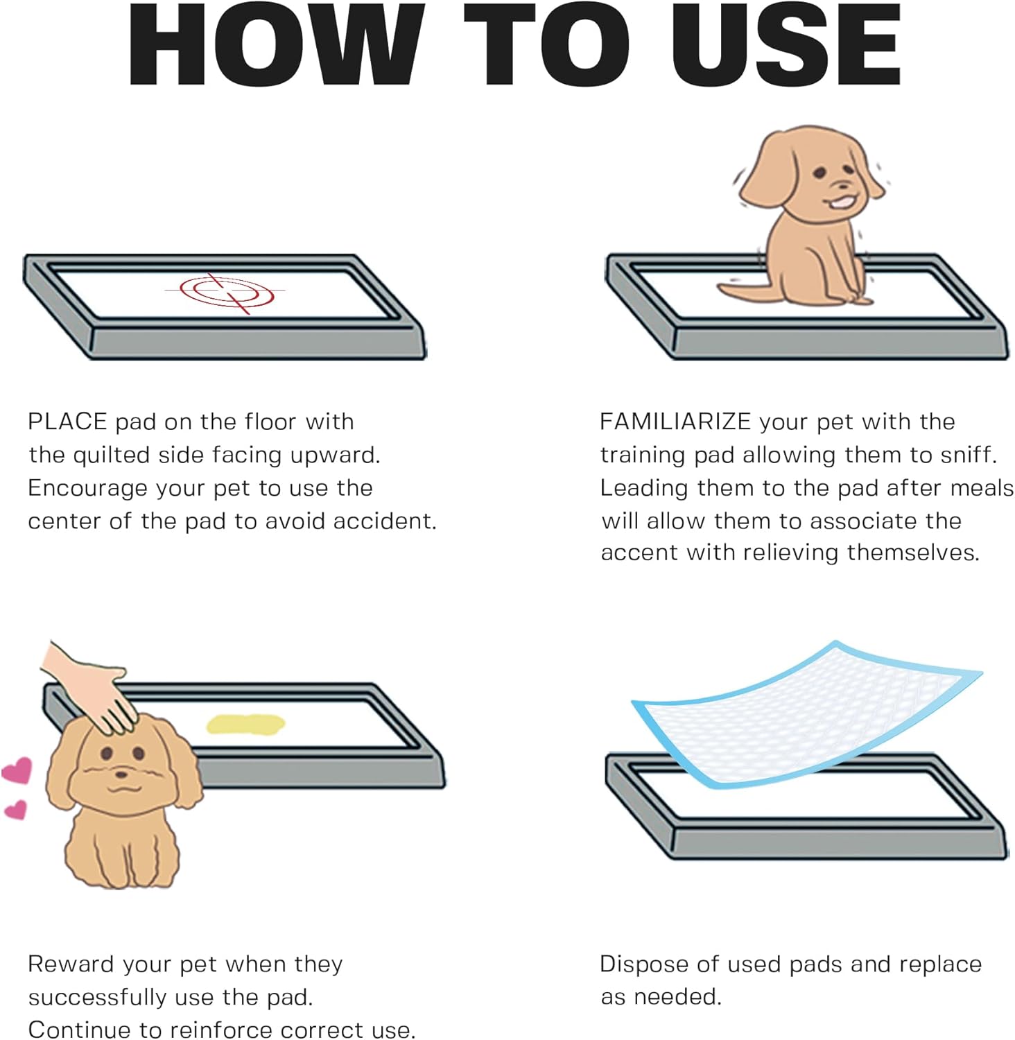 - INSTINCTIVE USE FOR FASTER RESULTS: Each dog pee pads extra large includes a built-in attractant that guides your pup to the right spot - great puppy pee pads learning or reinforcing potty habits.