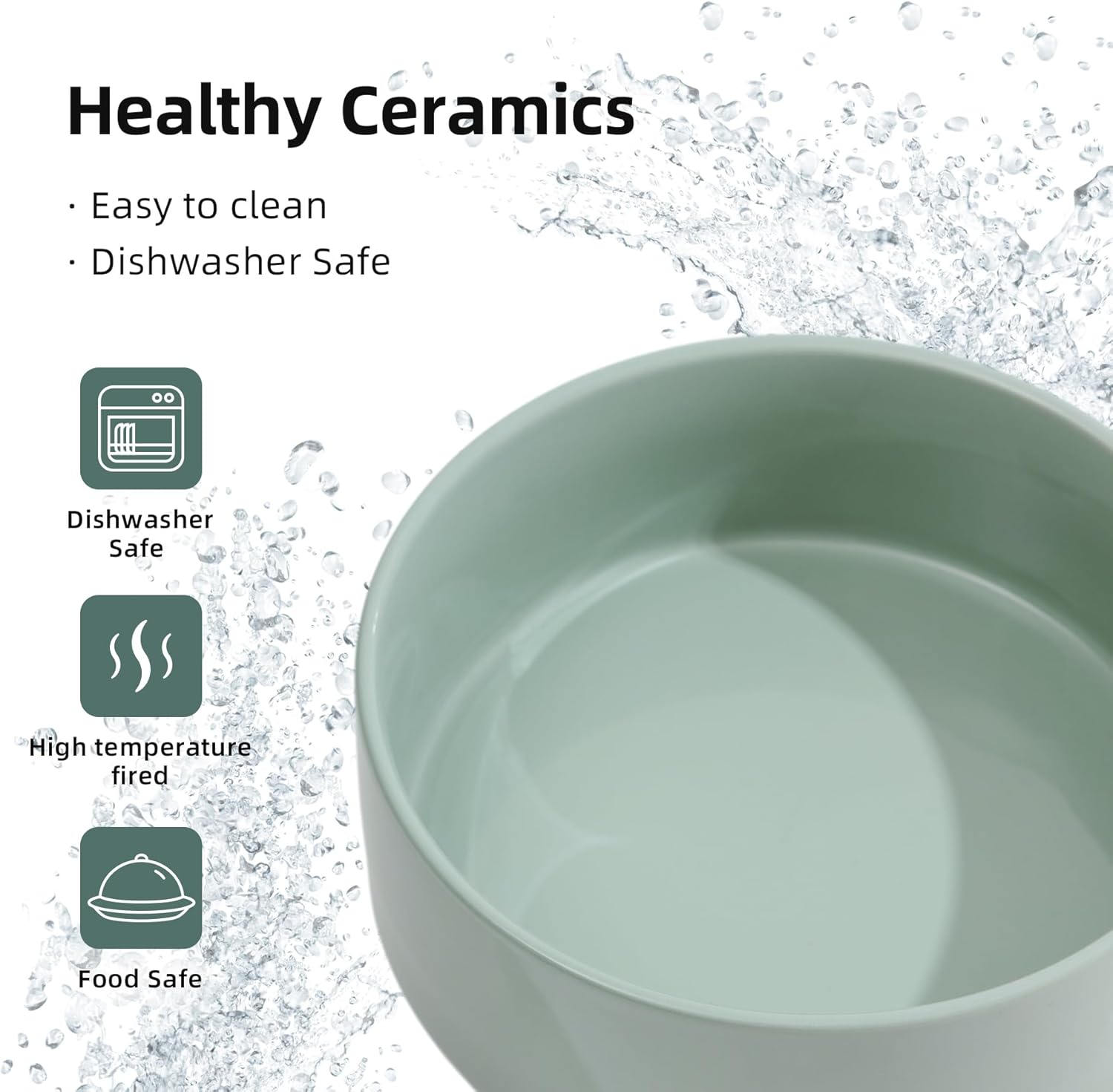 Ceramic 8.2inch Dog Bowl for Large-Breed Dogs, Anti-Slip and Weighted Pet Food and Water Bowl (Single Bowl - Light Green)