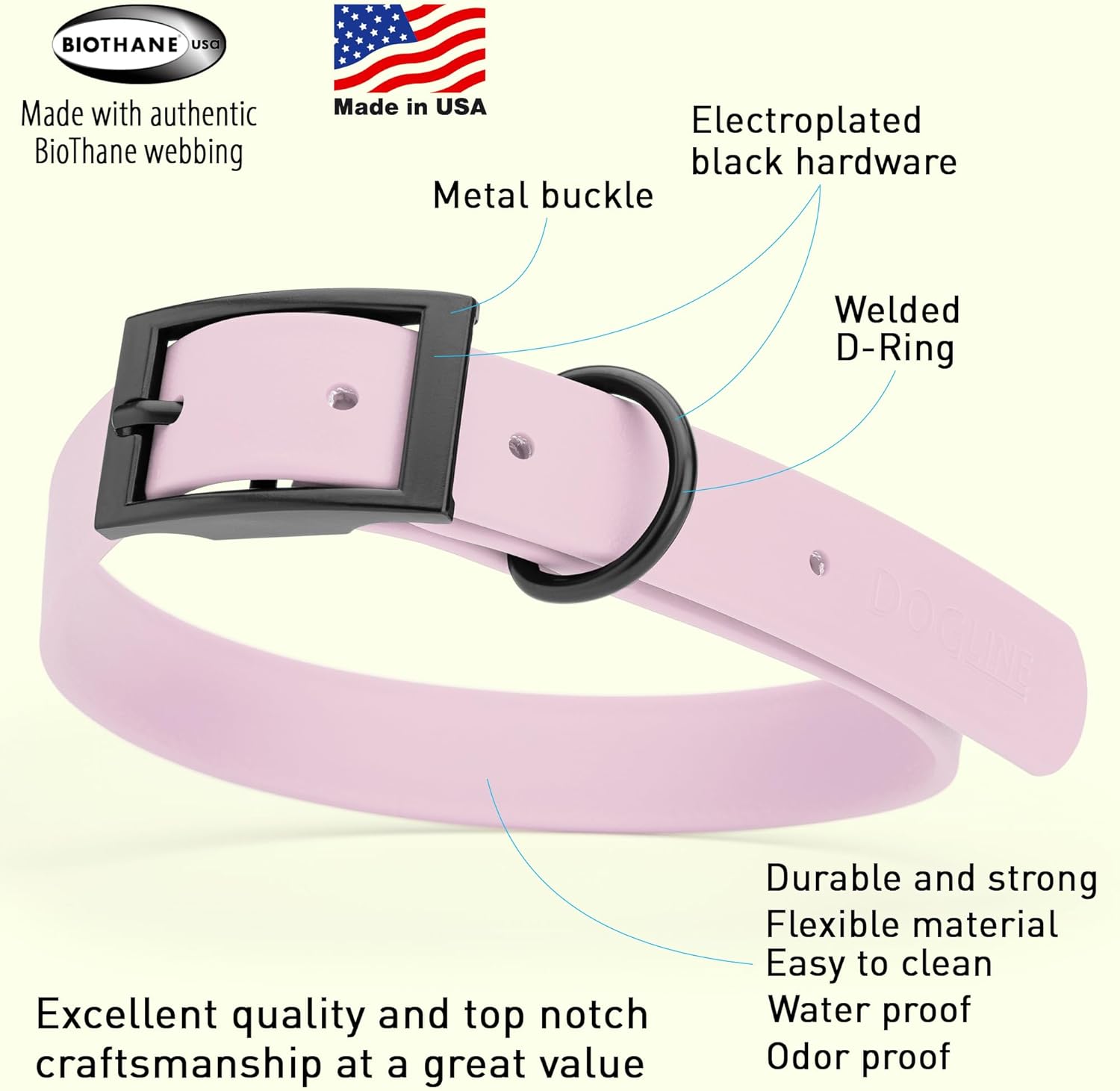 - Free Your Dog to romp in puddles and retrieve from lakes with the Dogline Biothane Waterproof Dog Collar. This water-repellent collar stays dry and odor-free, without shrinking or losing flexibility.
