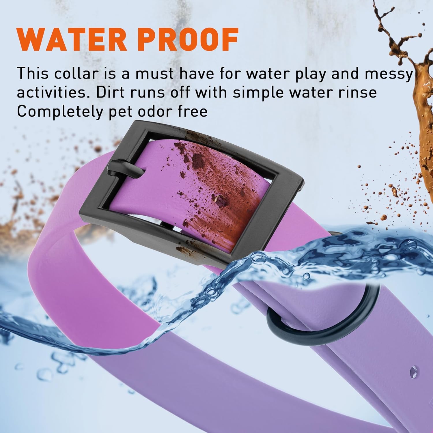 Dogline Biothane Waterproof Dog Collar Strong Coated Nylon Webbing with Black Hardware Odor- Proof for Easy Care Easy to Clean High Performance Fits Small Medium or Large Dogs, Amethyst Purple