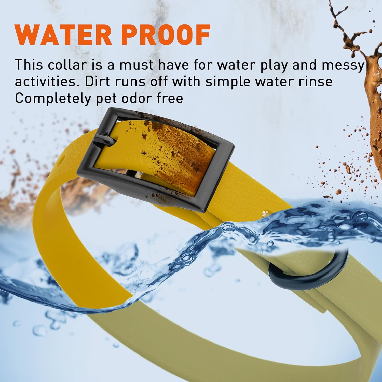 Dogline Biothane Waterproof Dog Collar Strong Coated Nylon Webbing with Black Hardware Odor- Proof for Easy Care Easy to Clean High Performance Fits Small Medium or Large Dogs, Treasure Gold