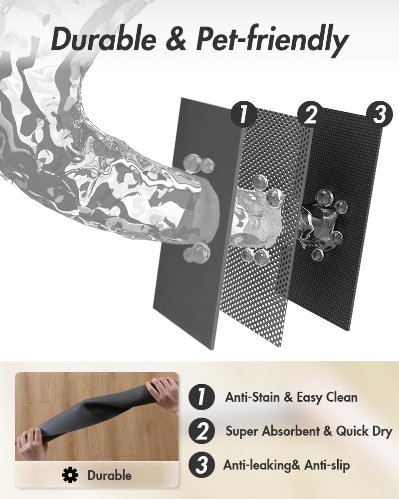- Super Absorbent & No Stains: Special absorbent surface hide any messy stains completely.β Magic pet food mat catch every drip off pets' chin around the pet water or food bowl. Prevent Say goodbye to spread stains and messy feeding area.